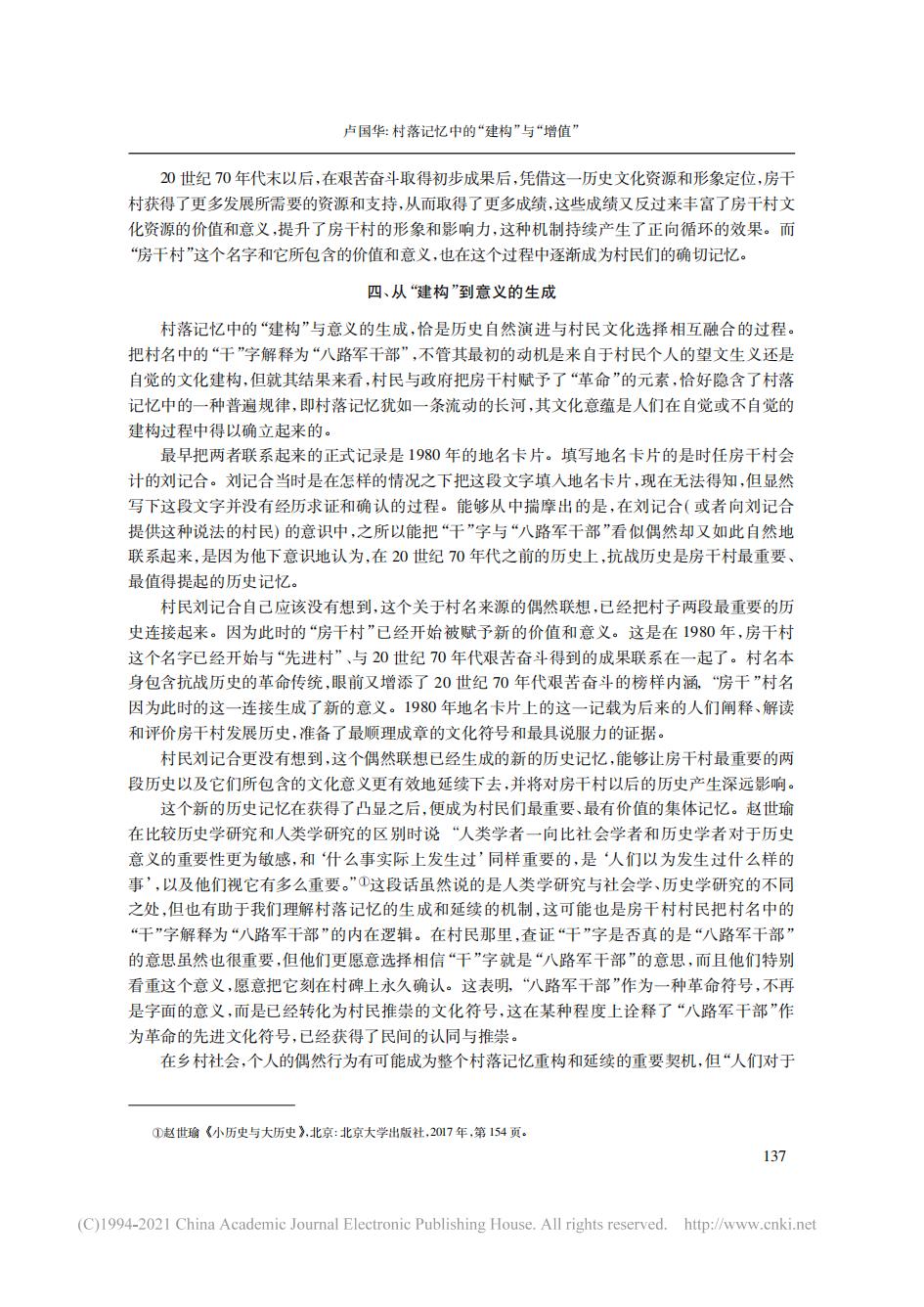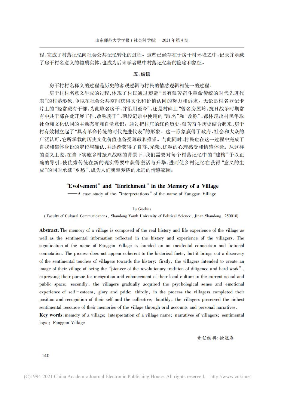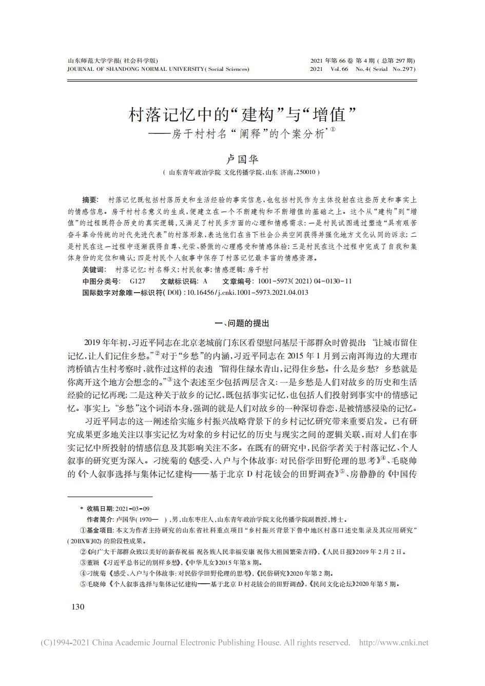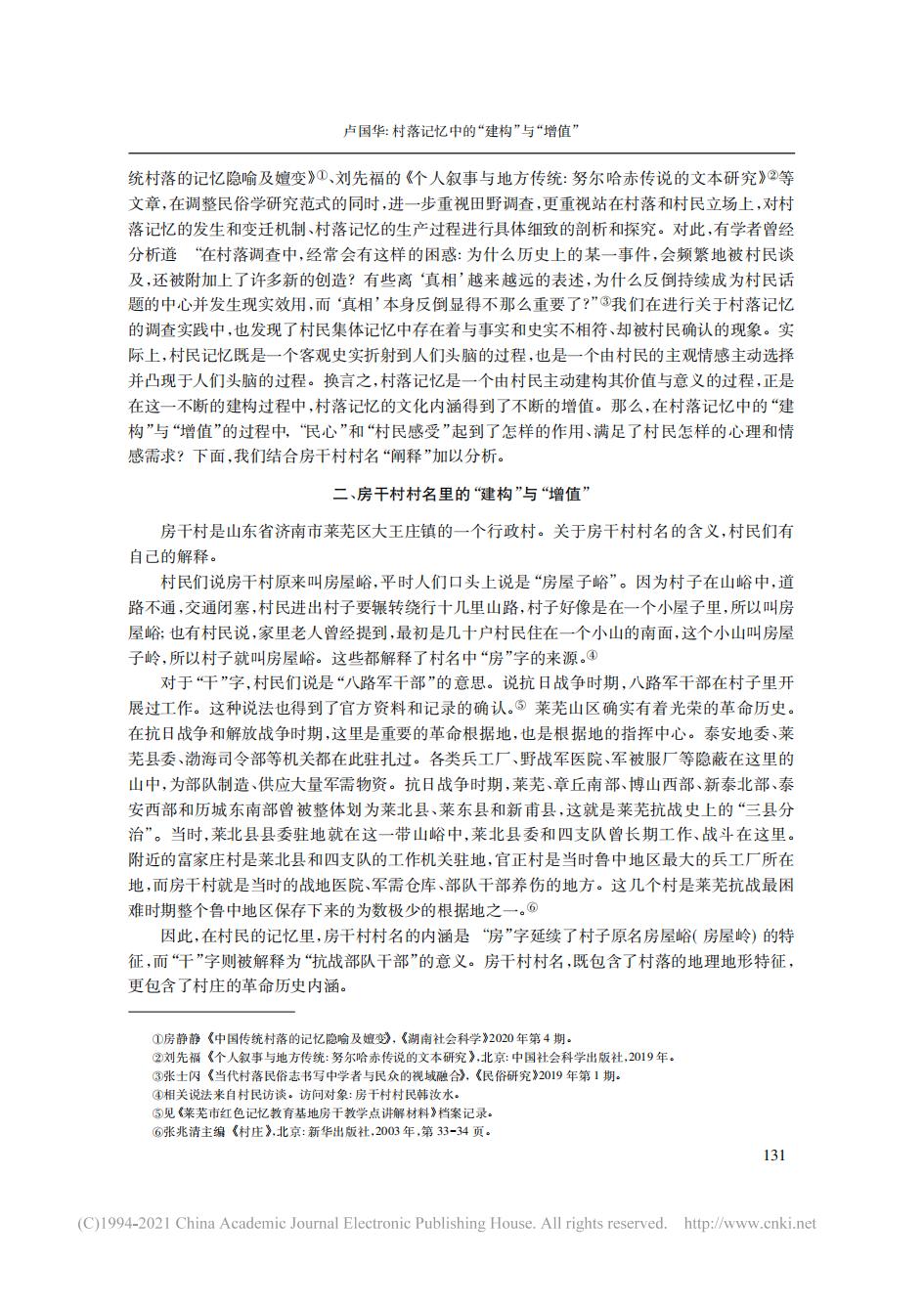 论文:村落记忆中的“建构”与“增值”——房干村村名“阐释”的个案分析