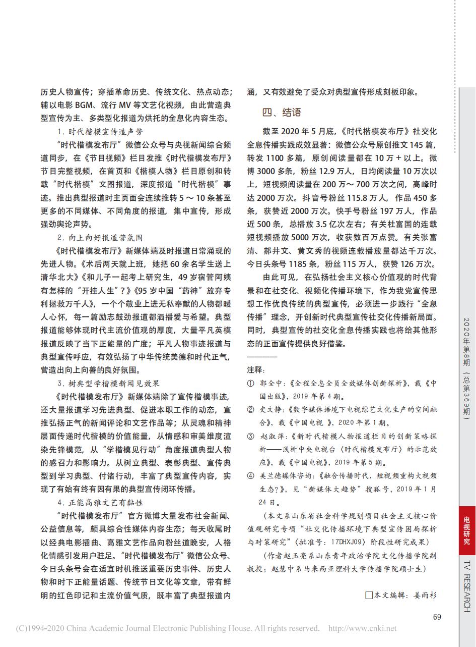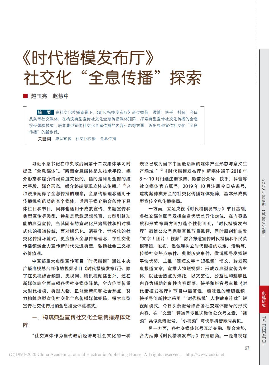 论文:《时代楷模发布厅》社交化“全息传播”探索