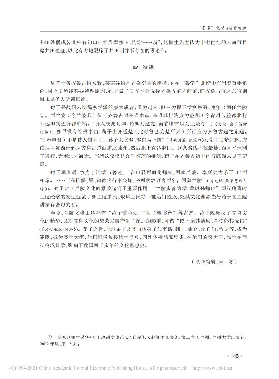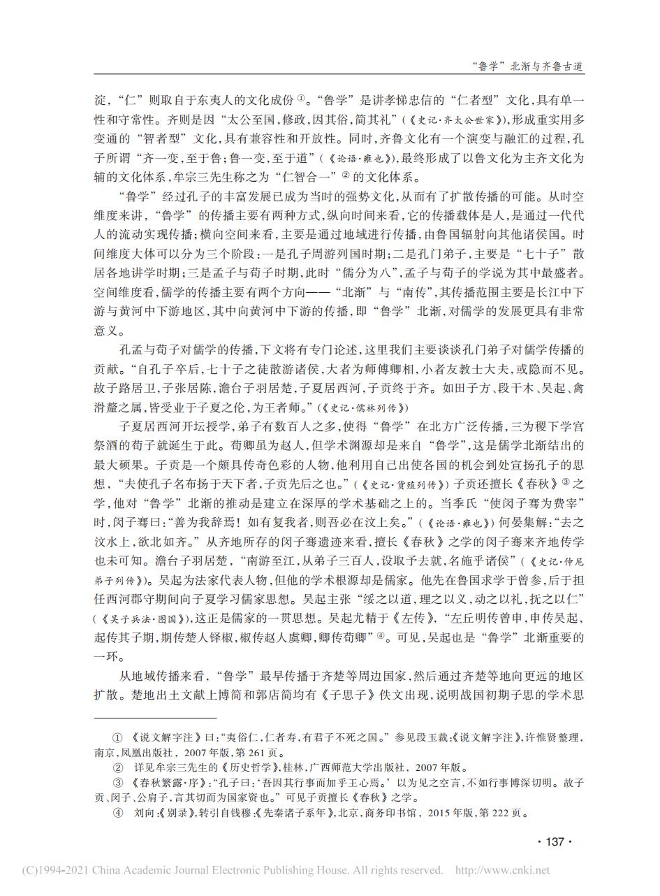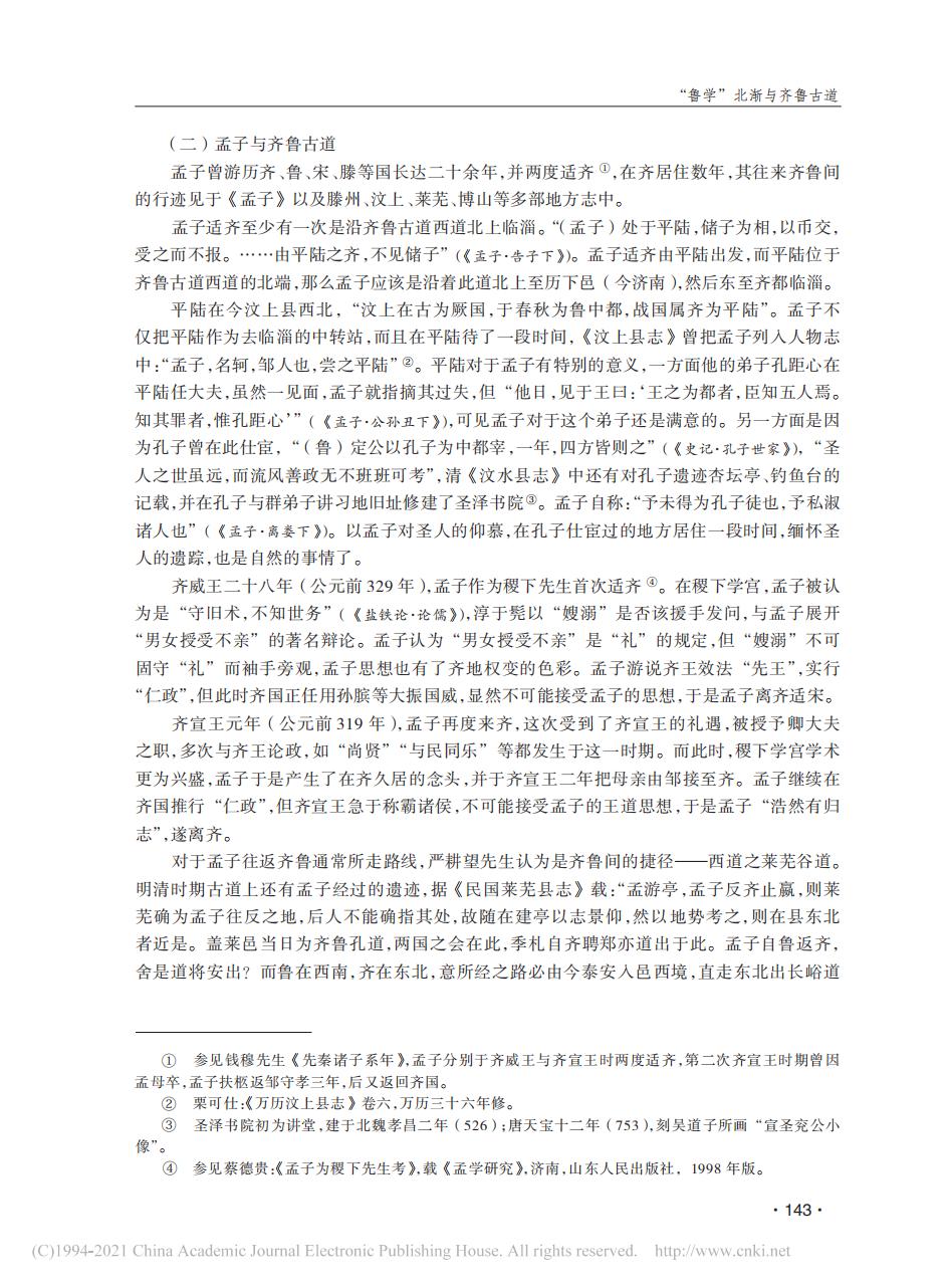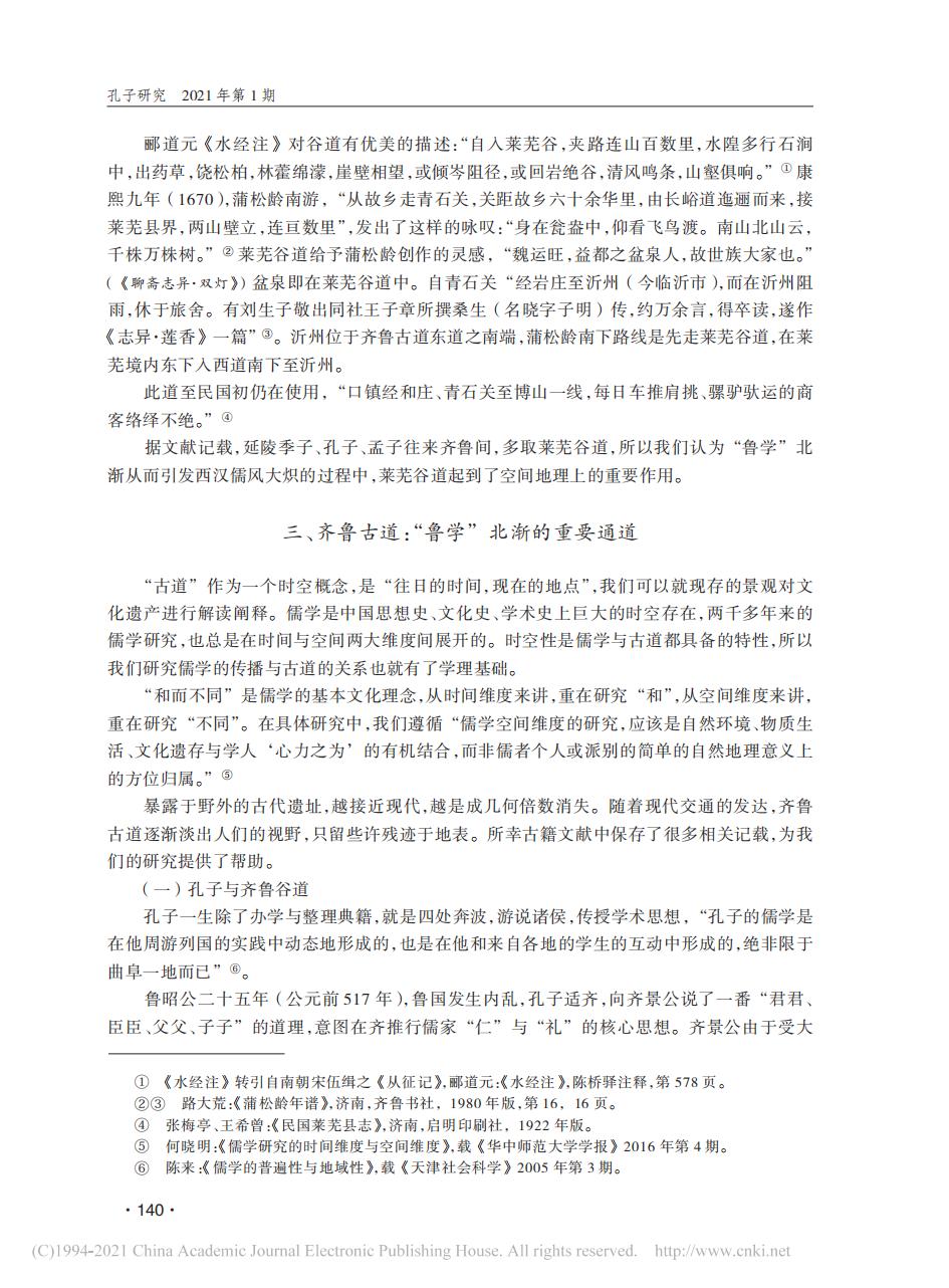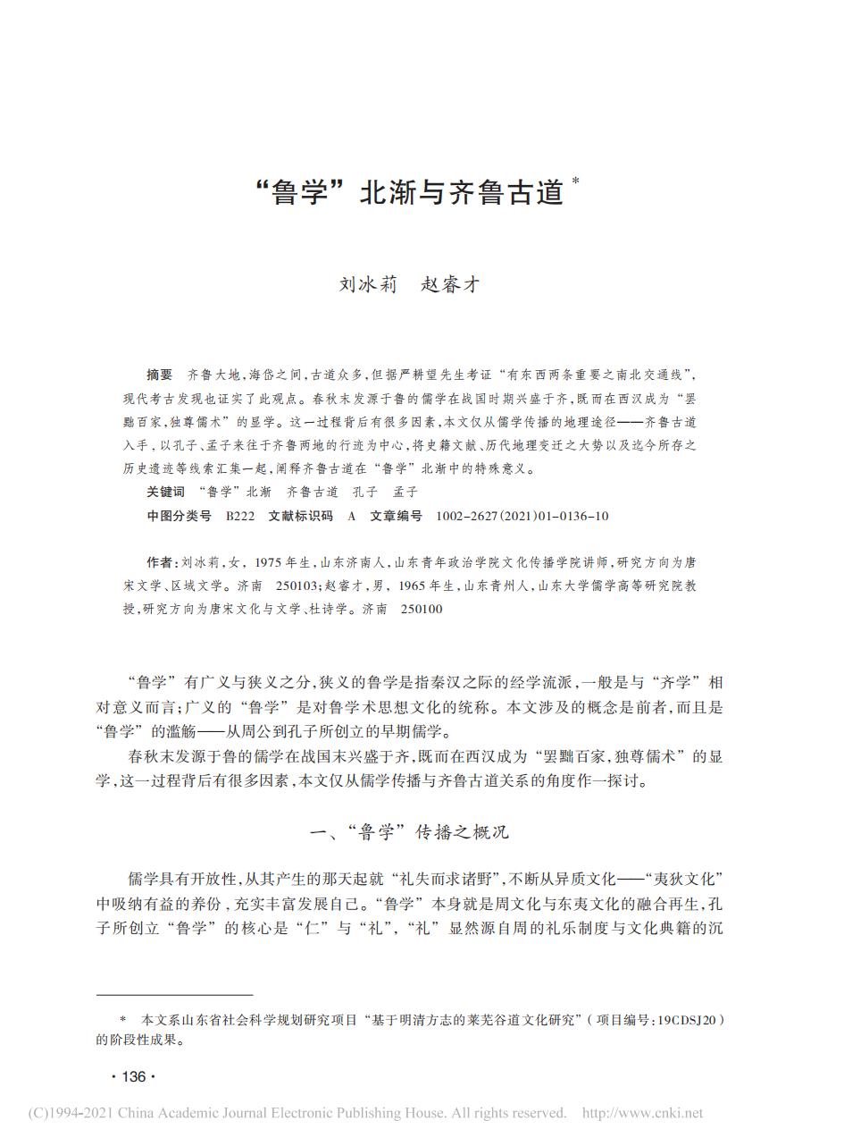 论文:“鲁学”北渐与齐鲁古道_刘冰莉