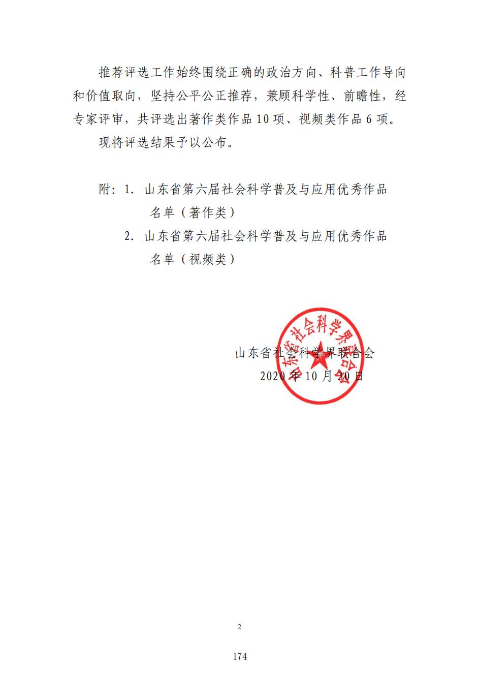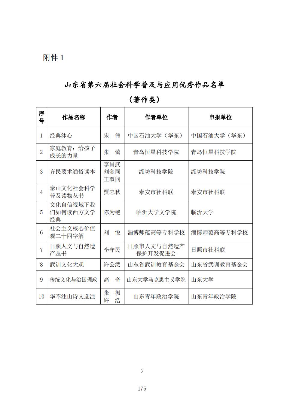 获奖:山东省第六届社会科学普及与应用优秀作品