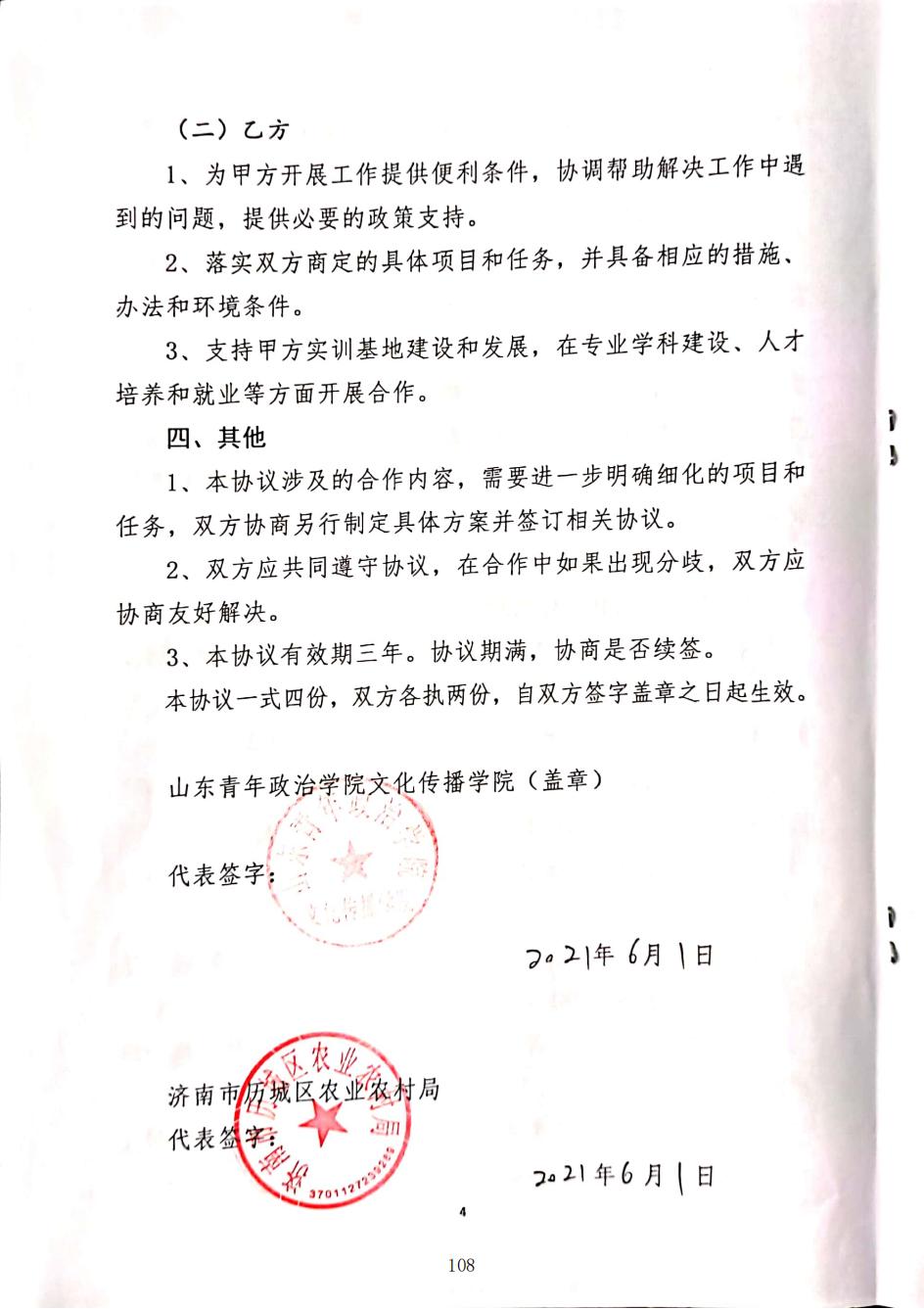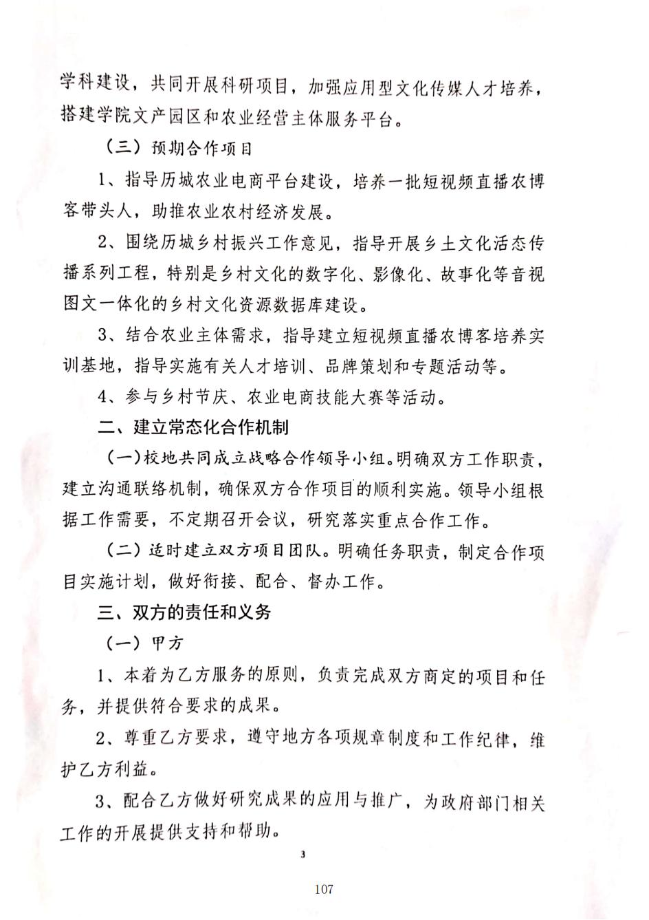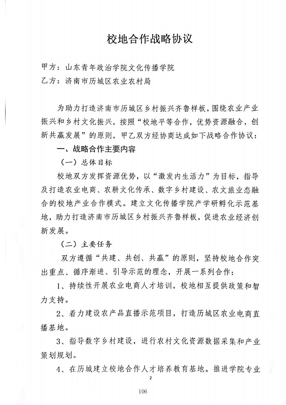 历城区农业农村局与山青院文化传播学院合作战略协议