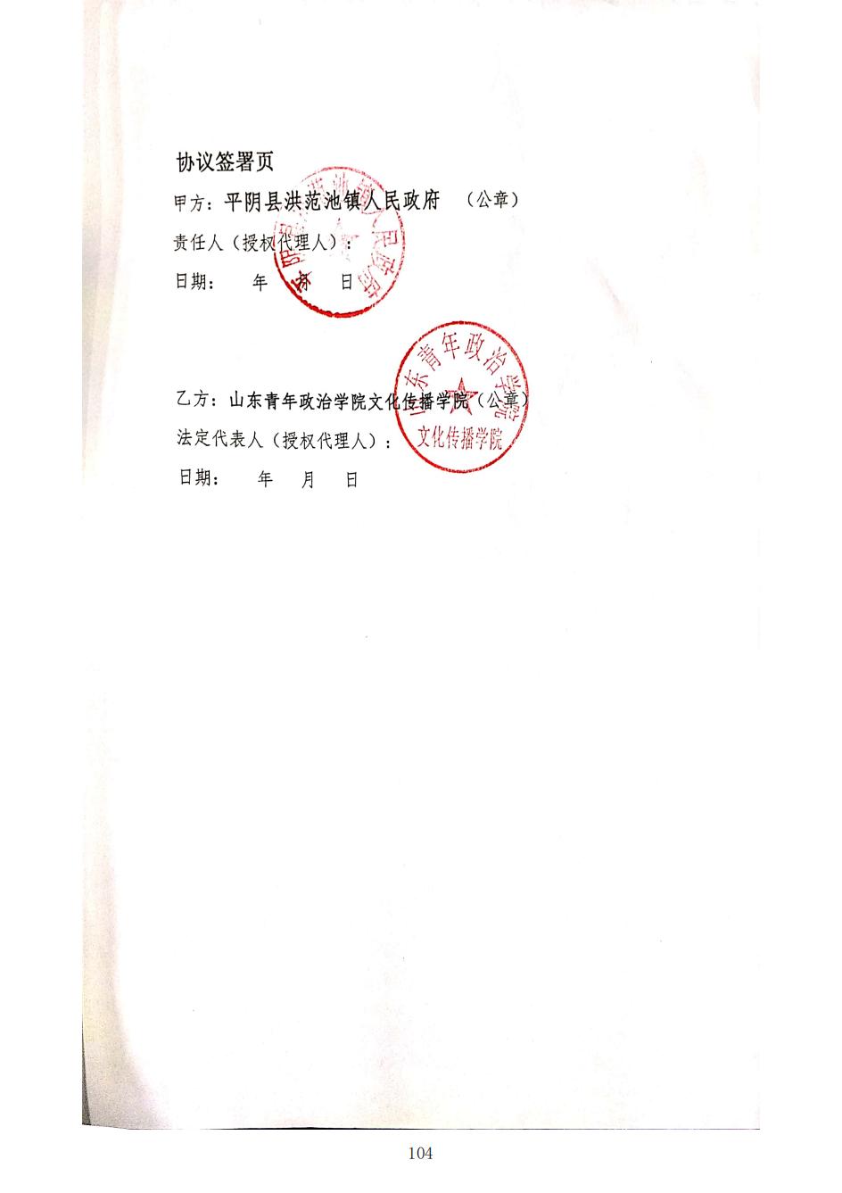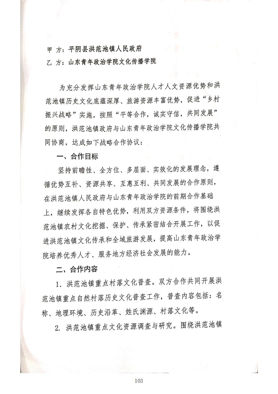 平阴县洪范池镇政府与山青院文化传播学院合作协议