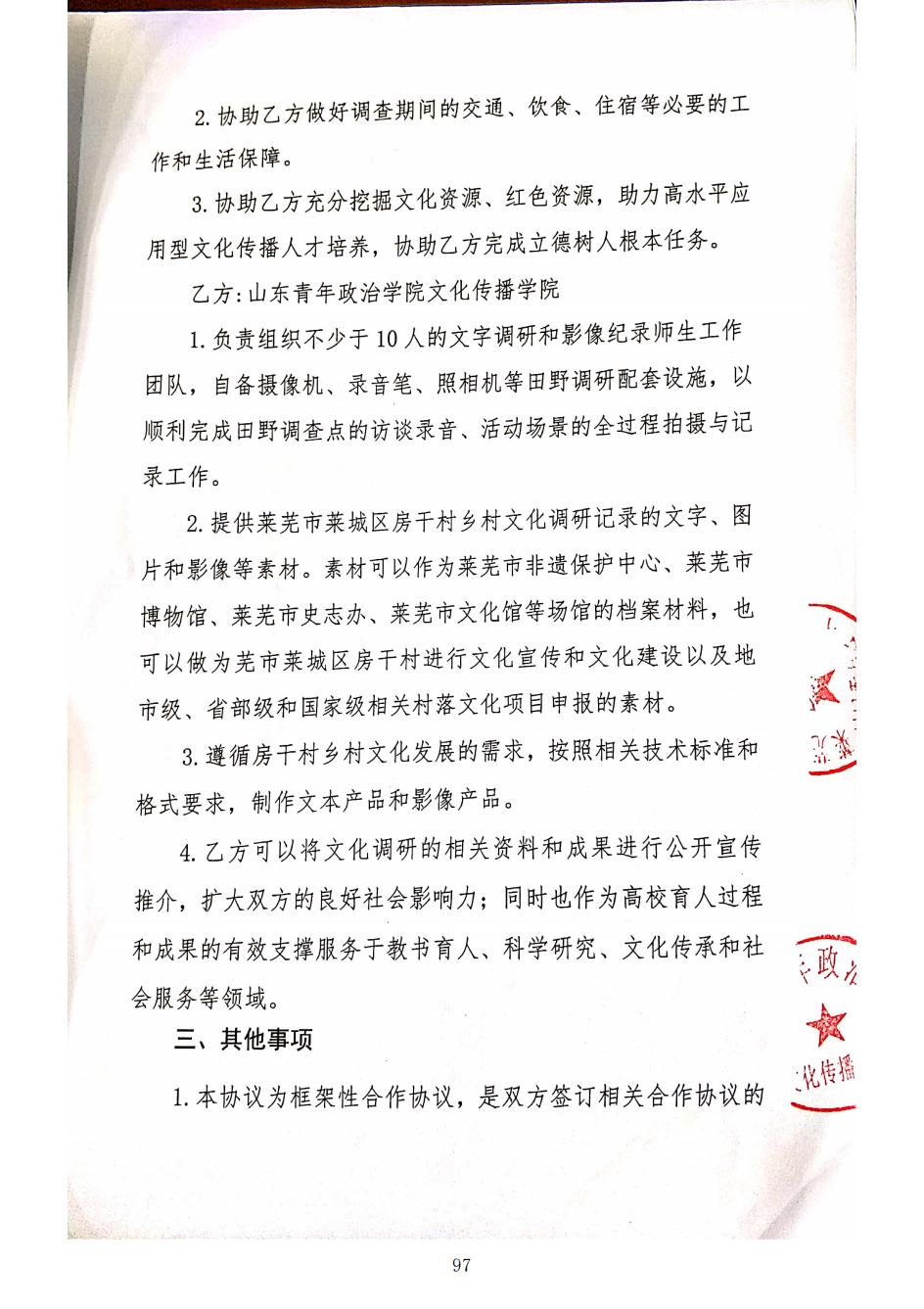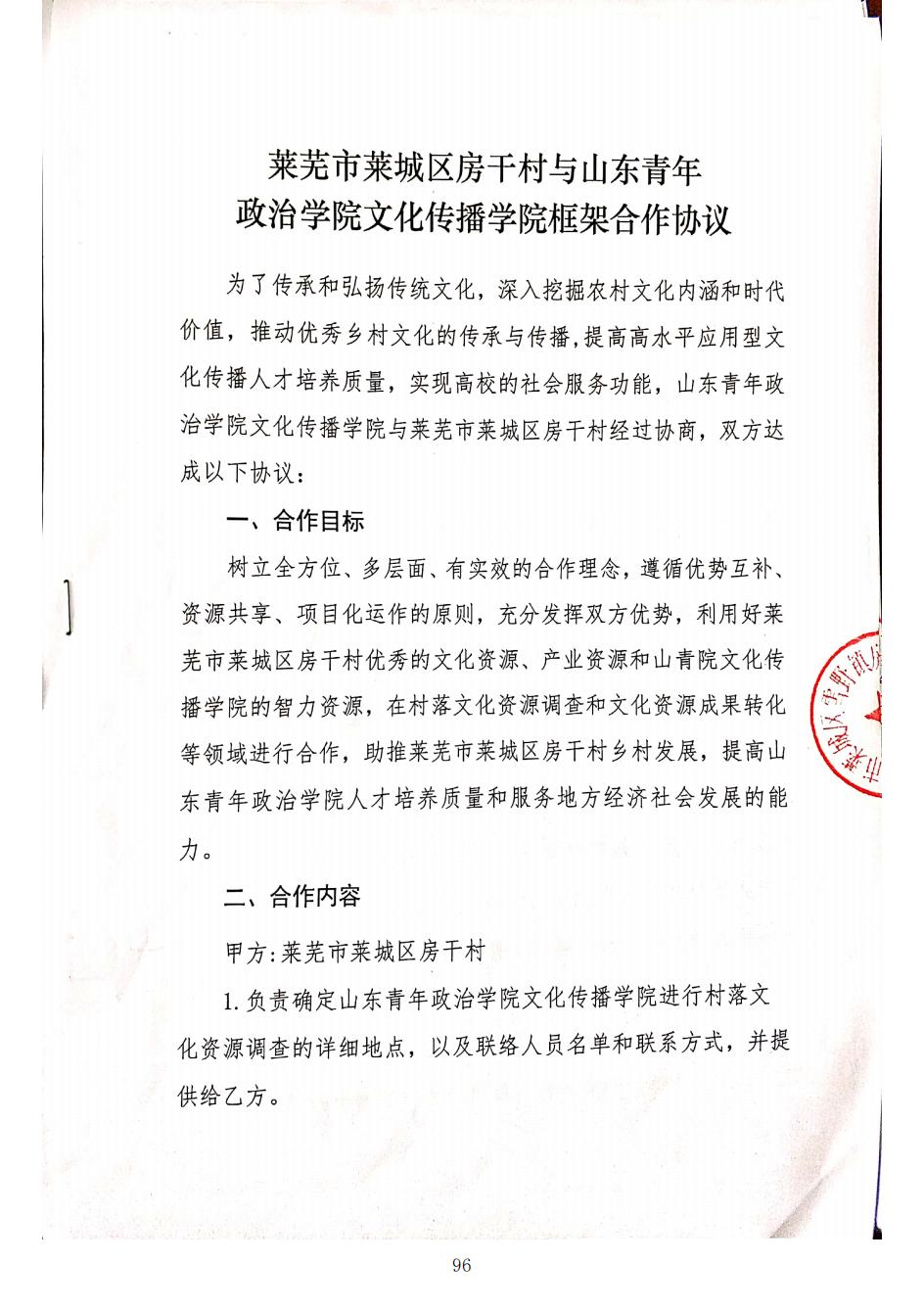 莱芜市莱城区房干村与山青院文化传播学院框架合作协议
