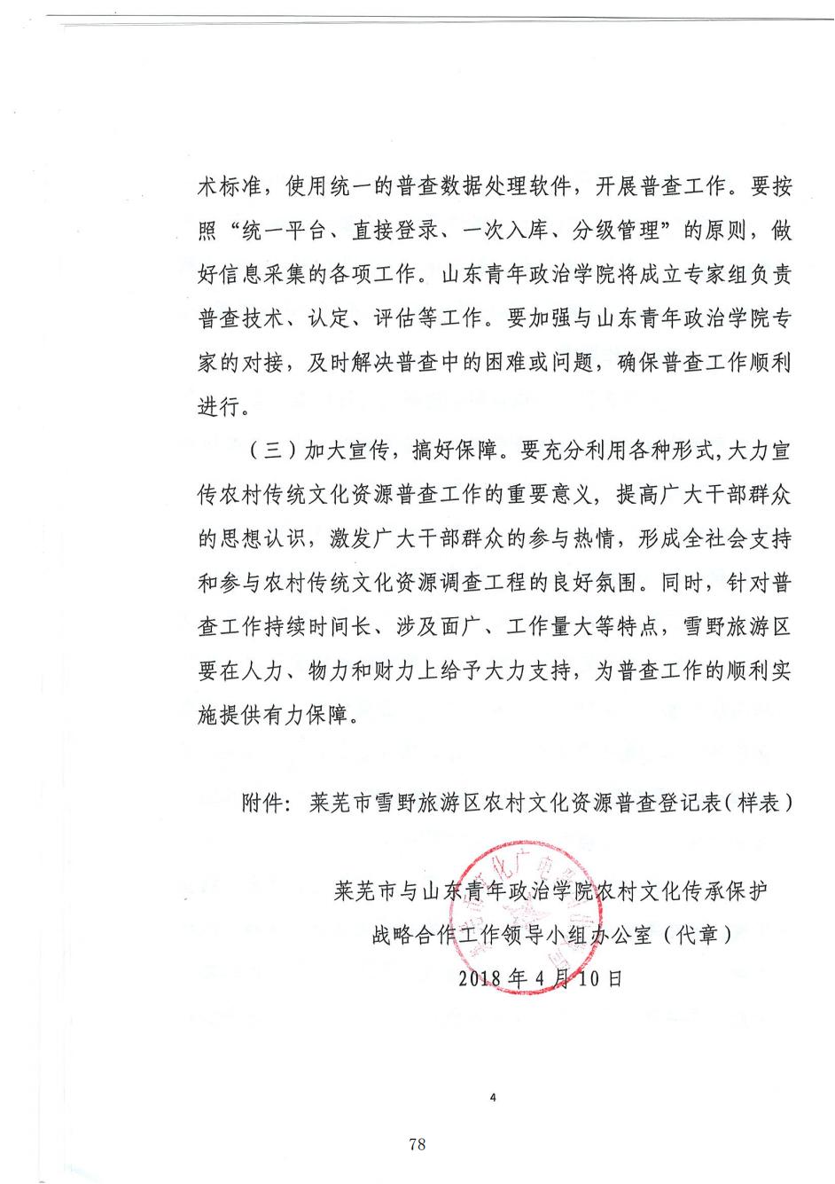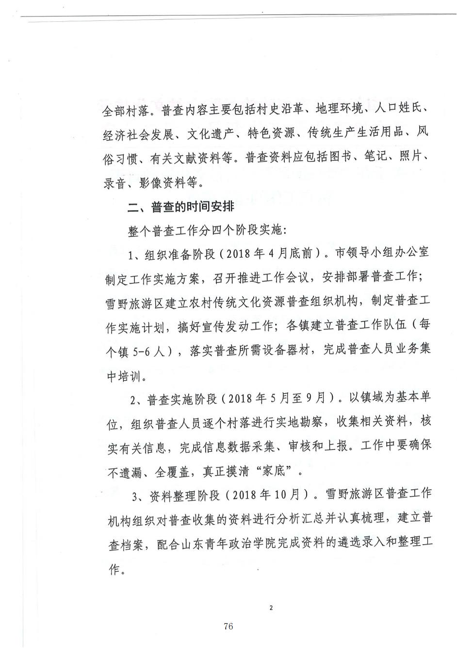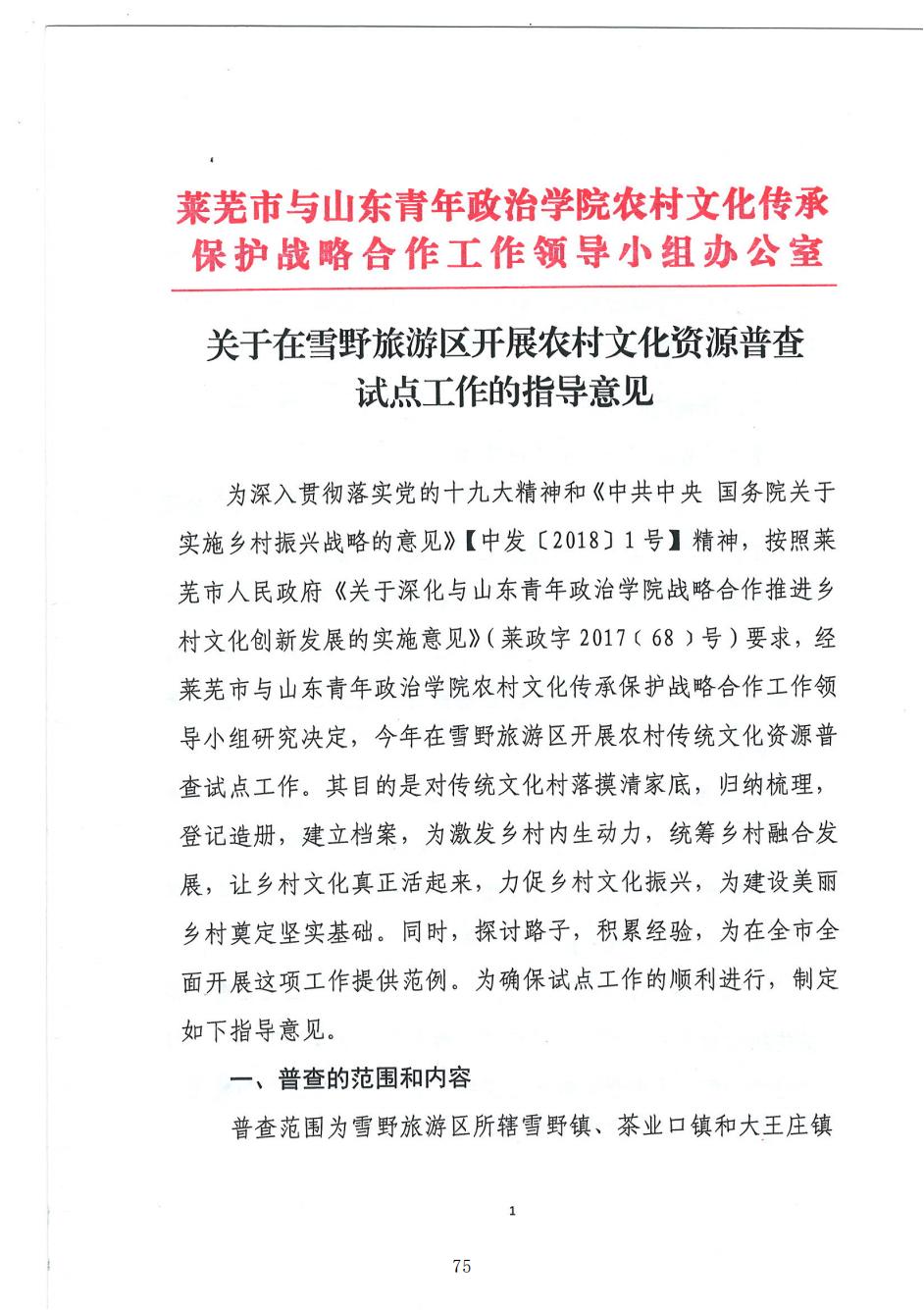 莱芜市关于在雪野旅游区开展农村文化资源普查试点工作的指导意见