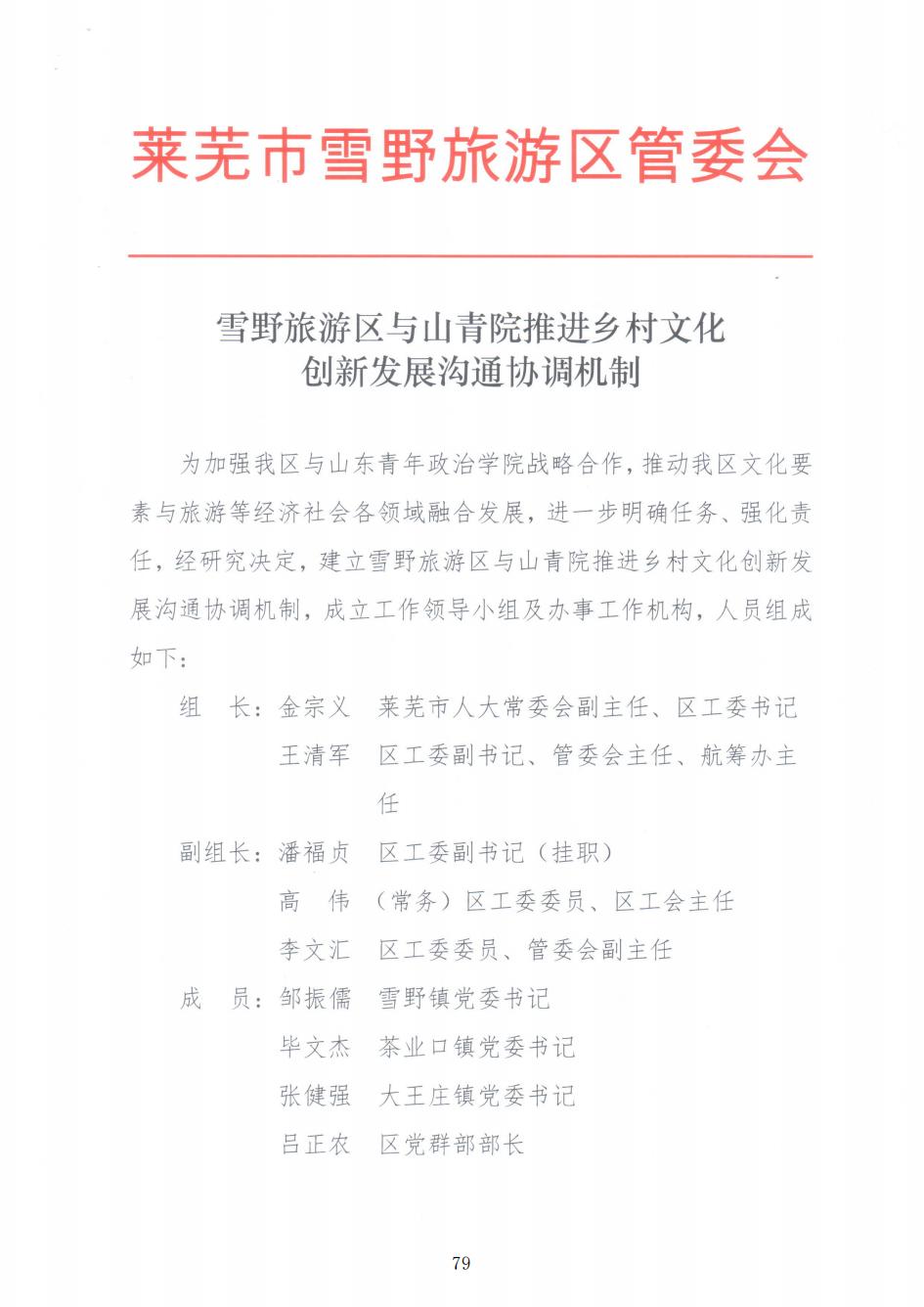 莱芜市雪野旅游区与山青院推进乡村文化创新发展沟通协调机制