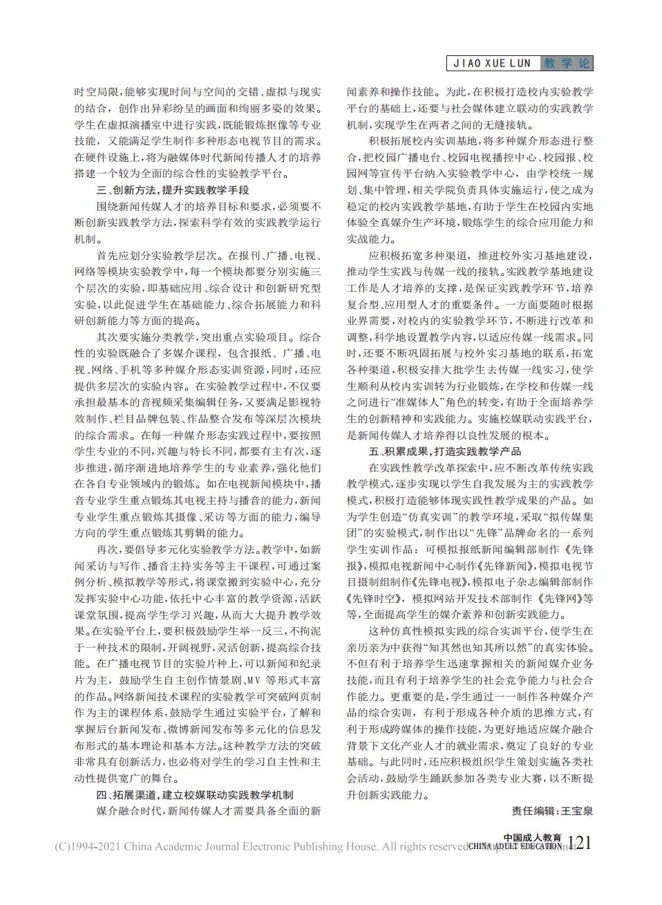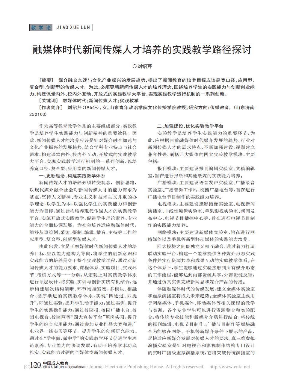 论文:《融媒体时代新闻传媒人才培养的实践教学路径探讨》