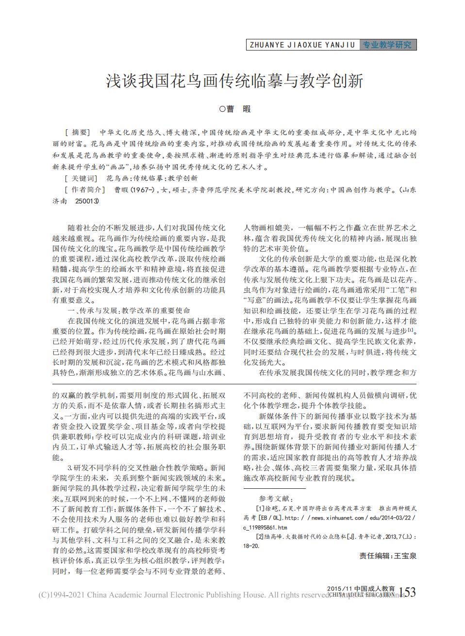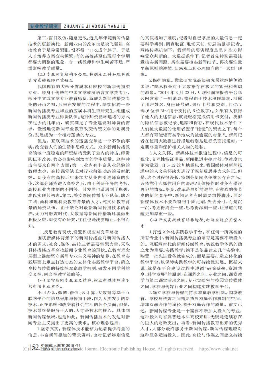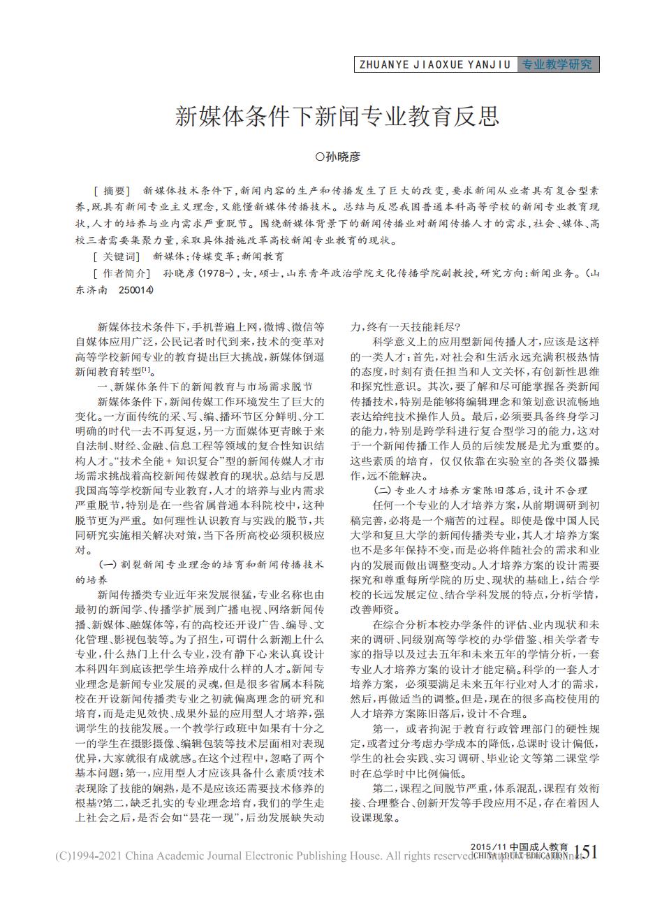 论文:《新媒体条件下新闻专业教育反思》