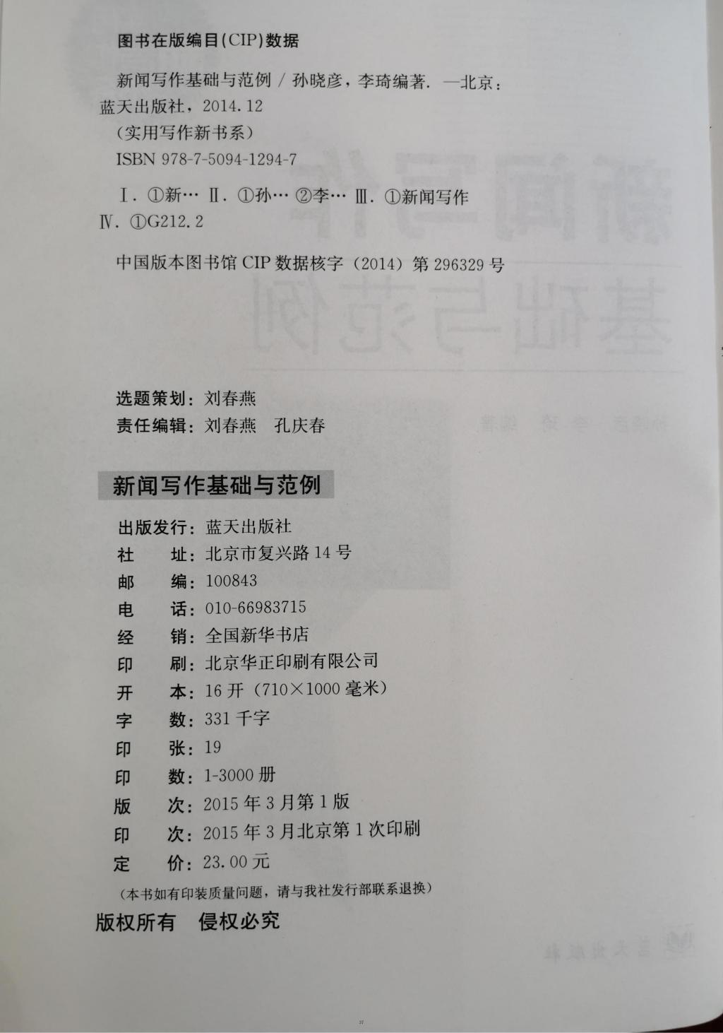 教材:《新闻写作基础与范例》