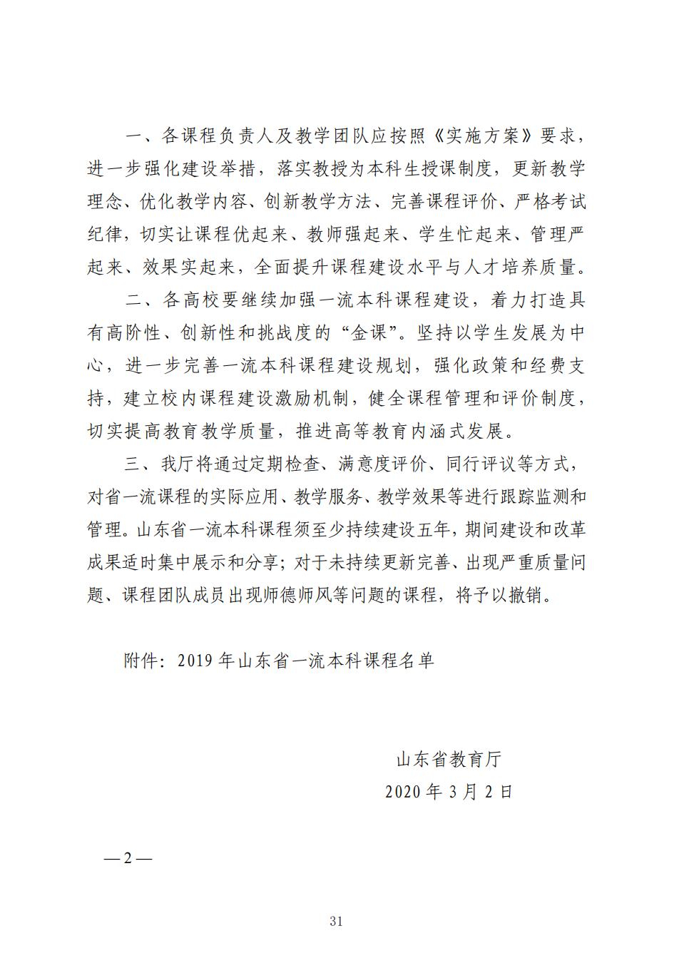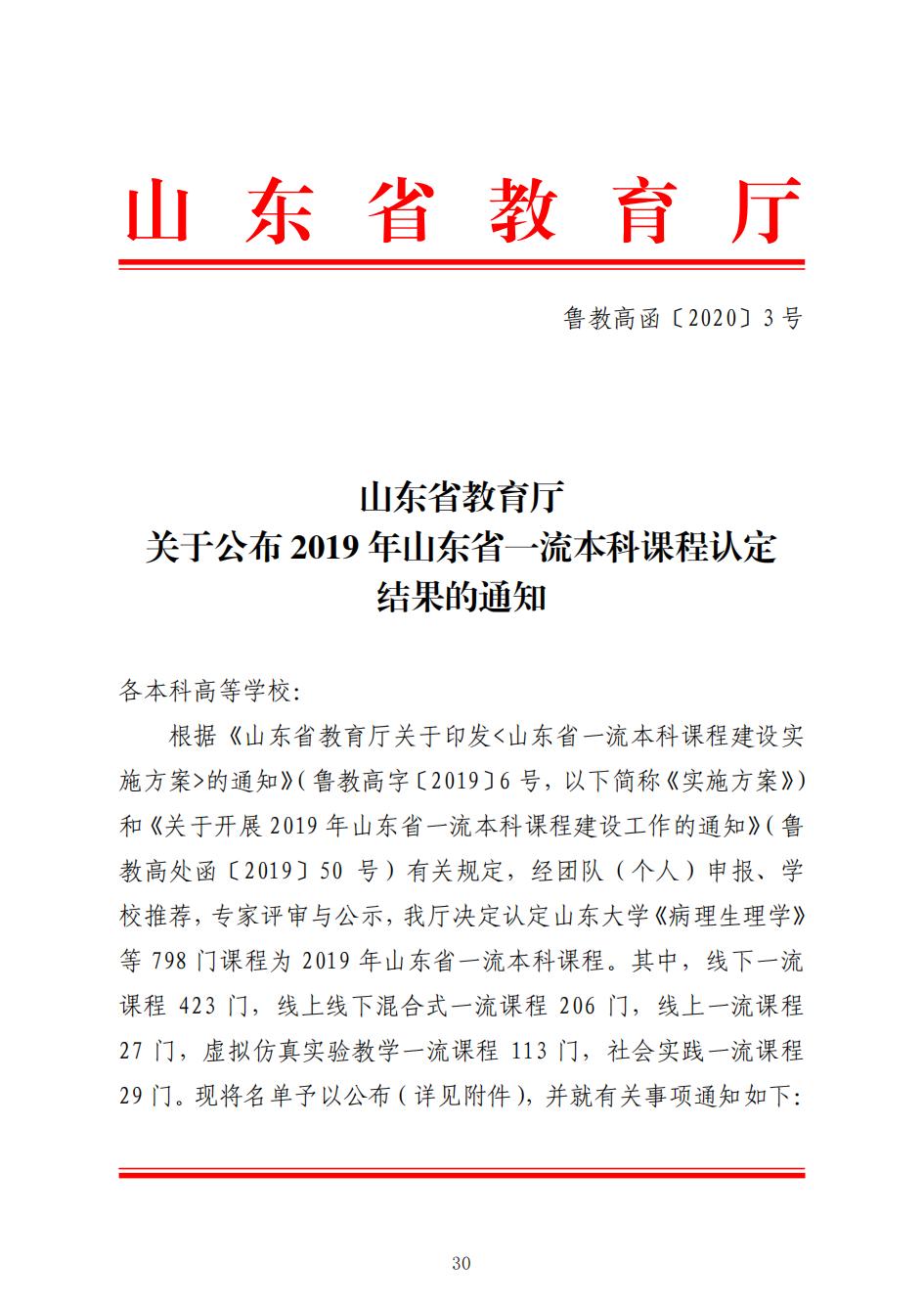 山东省一流本科课程2门