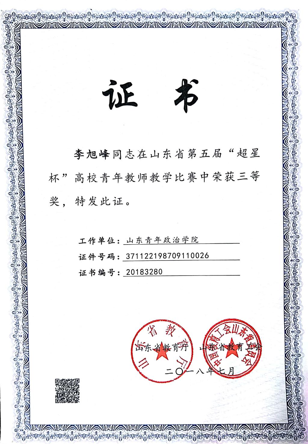 山东省第五届“超星杯”高校青年教师教学比赛三等奖