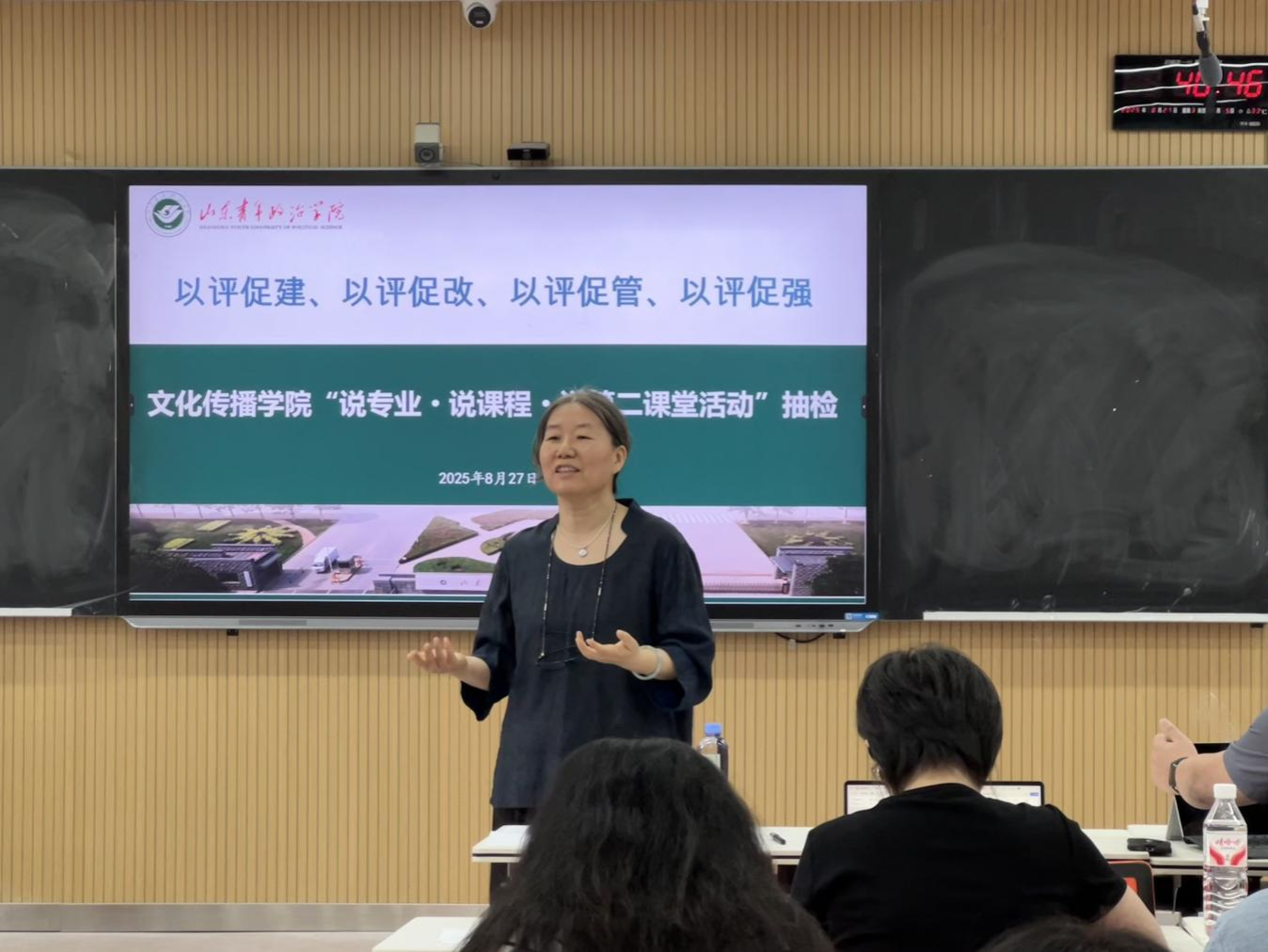 为推进专业内涵建设向纵深发展,塑造具有高辨识度和竞争力的专业特色,全方位、多层次提升教师的教学能力以及人才培养质量,全力迎接学校本科教育教学审核评估工作,8月27日,文化传播学院开展“说专业·说课程·说第二课堂”抽检活动。教务处处长白洁、教学质量监控与评估中心副主任闫春宇莅临现场指导工作。学院全体领导班子出席,学院全体教师参加。活动由学院副院长孙晓彦主持。