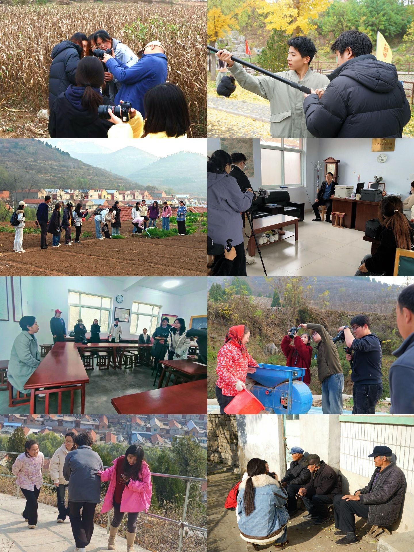 为深化政校媒协同育人机制,用镜头记录乡村之美,以专业实践助力乡村文旅发展,11月15日至16日,山东青年政治学院文化传播学院联合济南市章丘区文祖街道、济南日报报业集团,共同开展第一期“政校媒”联合采风活动。学院7名专业教师带领56名广播电视学专业学生深入水河村、水龙洞村,开启了一场“行走的课堂”,在真实新闻现场锤炼传媒本领,为乡村振兴注入青春智慧与专业力量。