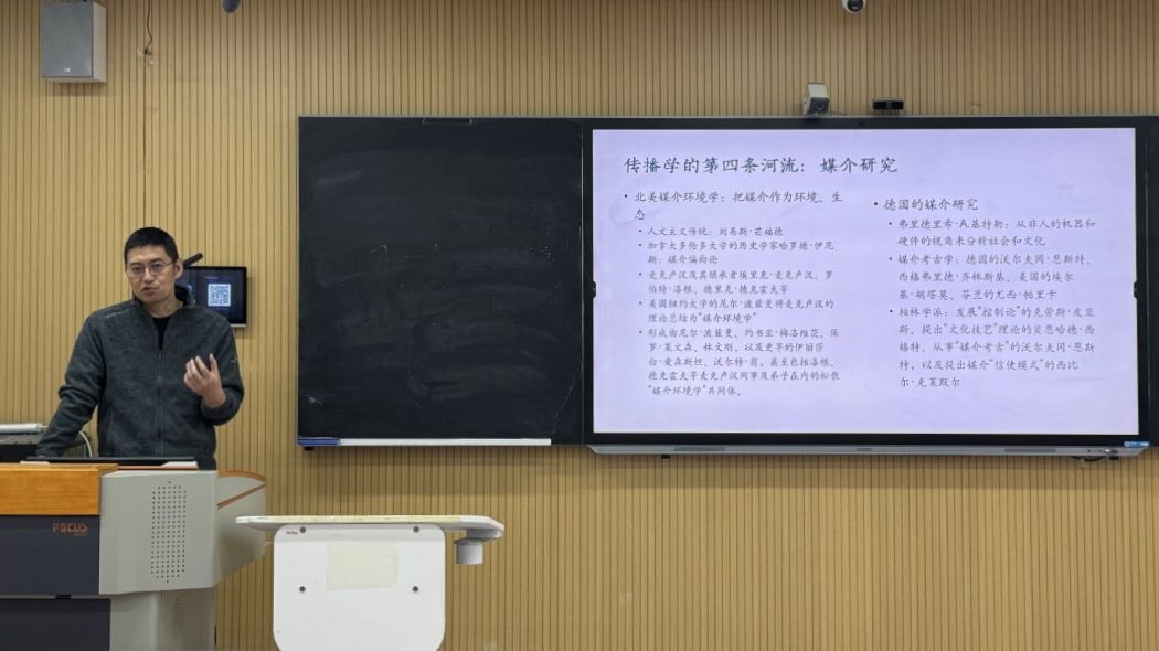 1月16日,学校学术前沿论坛系列活动在知行楼513成功举办。本次论坛特邀国家高层次人才计划入选者、中国人民大学新闻学院传播系主任、《国际新闻界》主编刘海龙教授,以《传播学的历史、现状与机遇》为题开展专题讲座。讲座由科研处主办、文化传播学院承办,学校相关学科教师及学生代表到场聆听,现场反响热烈,学术氛围浓厚。