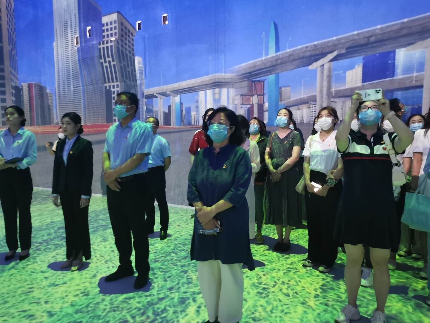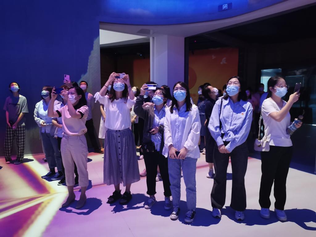 在党史教育展览馆工作人员的详细介绍下,师生党员们参观了以“辉煌一百年、奋斗新时代”为主线的三层展厅,生动再现了旧民主主义革命到新民主主义革命时期,中华民族“站起来”的革命历程;改革开放和社会主义现代化建设新时期,中华民族“富起来”的伟大征程;中国共产党在中国特色社会主义新时代推进、实现强国大业,中华民族“强起来”不同时期的辉煌历史。通过数字高清互动投影、裸眼3D、视频播放等沉浸式、互动式、体验式的呈现方式,让广大师生党员身临其境感受革命先辈的奋斗故事,重温了中国共产党在不同年代坚定革命信念和艰苦奋斗的精神。