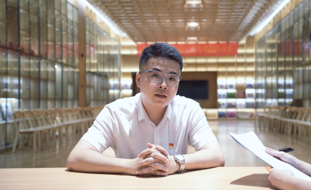 团队成员采访基地宣教部讲解员,我院2021届毕业生苏星宇。苏星宇毕业后便返回家乡,扎根于基层一线,成为劳模精神劳动精神工匠精神基地第一批公开招聘的讲解员,在工作中他充分发挥共产党员的先锋模范作用,始终保持旺盛的学习热情和探索精神,将小我融入大我,为家乡的建设、社会的进步、国家的繁荣贡献自己的青春力量。