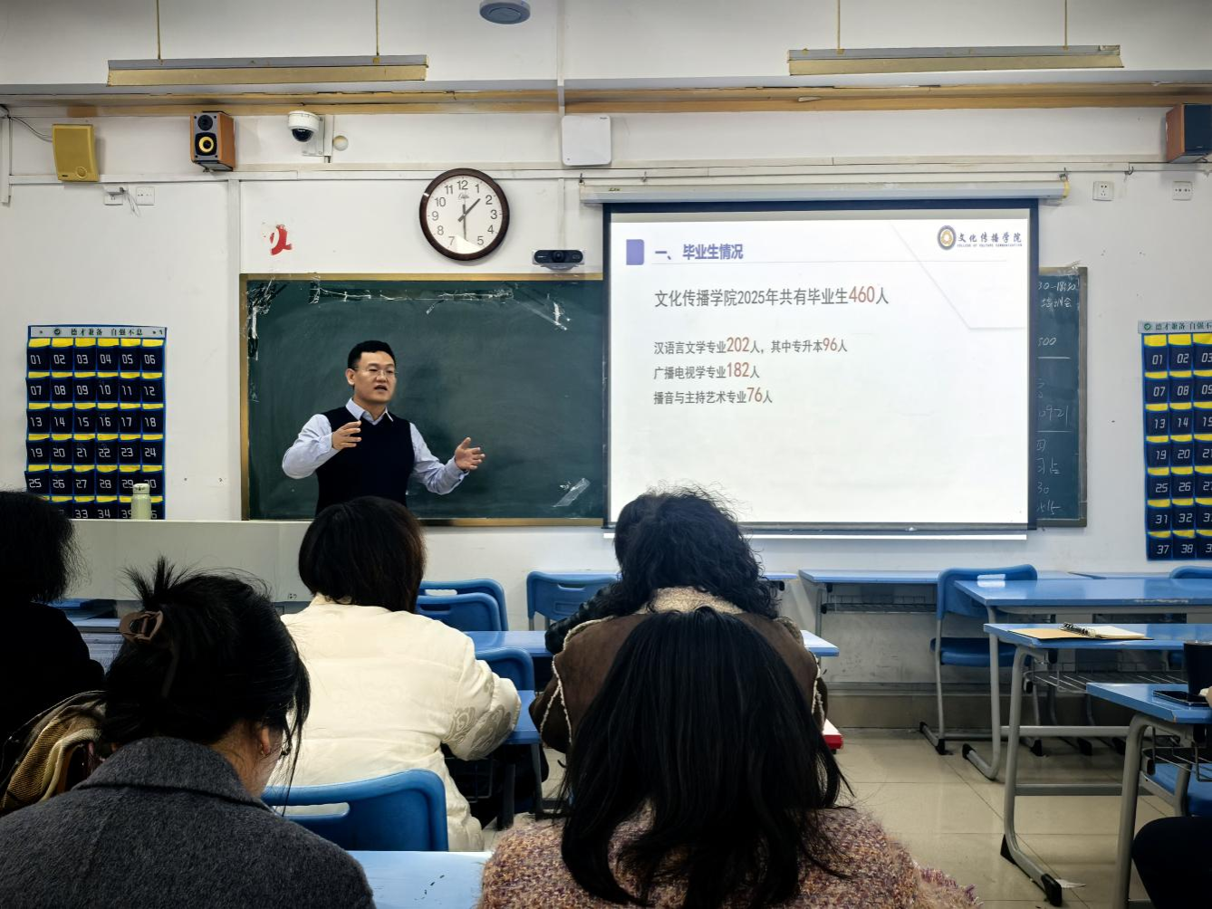 会上,杜兴东围绕“就业优先战略与推动实现高质量充分就业”主题,从学习习近平总书记关于促进高质量充分就业的重要讲话精神解读和学院2025届毕业生的就业情况分析两个层面进行了充分讲解。
