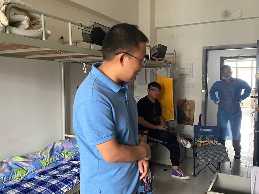 6月12日上午,学院党总支副书记李杨,团总支书记、学工办主任刘磊以及全体辅导员等候在学校门口的返校监测点迎接同学们。返校的2020届毕业生在老师们的指导下顺利完成信息登记、体温测量、核酸检测等工作。中午,学院党总支书记王连峰、副院长孙晓彦、党总支副书记李杨、副院长闫春宇深入学生宿舍,亲切探望学生,耐心细致地与学生交流,了解学生需求,关心学生疫情期间居家学习、生活状况,并提醒同学们返校后要自觉遵守学校疫情防控相关要求,养成良好卫生习惯,不能放松个人要求。2020届毕业生班主任深入宿舍,和同学们交流学习和就业情况。