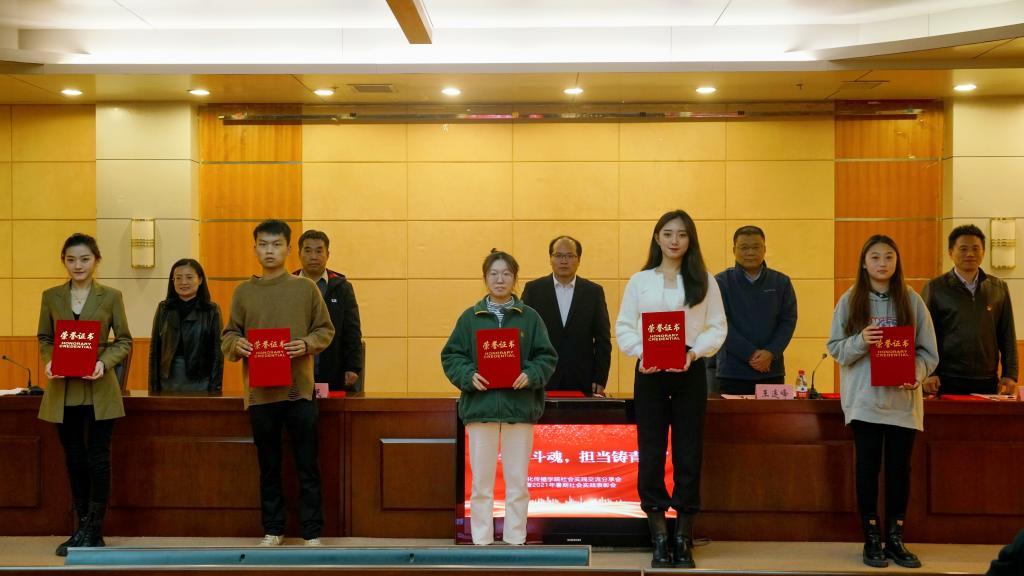 随后,党委副书记李杨宣读表彰决定。他提到,在社会实践过程中,各团队积极深入实践,发挥专业优势,凝聚师生力量,整合社会资源,注重过程性成果留存与产出,最终共形成社会实践视频成果25项、文字成果8项、新闻成果42篇;其中包括省级媒体报道1篇、校级媒体报道7篇,院级媒体报道32篇,实践成果突出,效果显著。在座的每位同学都要珍惜荣誉,不断进步,努力成为一名有担当的青年人才。优秀实践团队代表赵舒婷,优秀实践个人代表李萌,“青春引擎”实践育人专项优秀学生代表王潇曼,优秀实践团队代表田一庚依次进行发言,分享本次社会实践经验。各位优秀代表以良好的精神面貌,对实践内容进行生动的讲解与全方面、多维度总结。