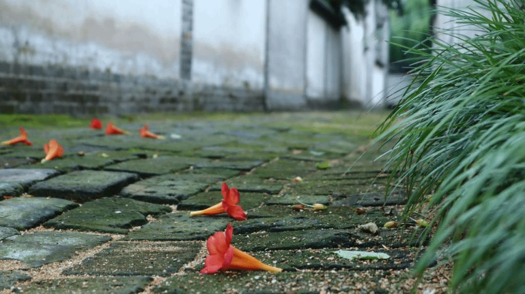 走进省政府旧址,这里的建筑干净结实,传统硬山顶式的屋顶建筑,每一个厅局的黑色大门都庄严又朴实,高高的门锁,结实的木门,依然保留着过去的风格。门的两侧保留了两个小巧但很威严的石狮,它们看守这里已然许多年。小路上的铺路石比大路上陈旧许多,甚至有些高低不平。上面长着嫩绿的青苔,踩着很滑,或许是下过雨的缘故,石榴树上的花有几朵掉落在青苔上,或许这条小路在几十年前,也曾有人跑着,或是完成上传下达的任务,或是向战友奔走相告得知的好消息。也算得“落花时节又逢君”。在路上,团队成员向同行的朋友询问这里的建设历史,这是她的家乡。她说儿时经常跟随父母来这里参观,听父母说,这些建筑在许多年前变得破旧,后来又得到了整修,同时尽可能地保留了原来的模样。
