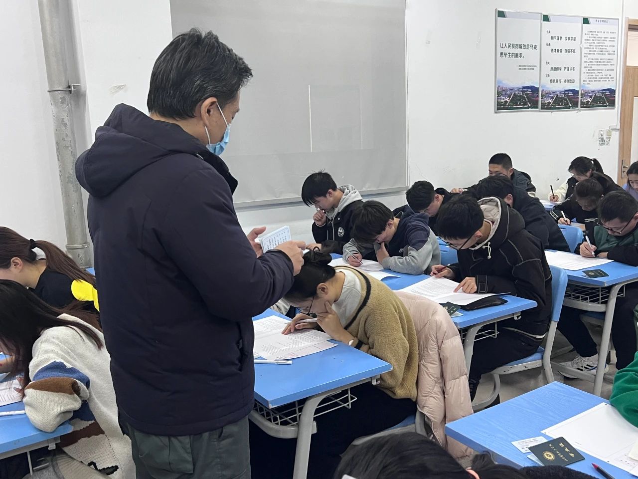 院领导强调,要重视教学测验的信度、效度、难度,不断加强考务管理,完善“诚信考场”。严抓考试纪律,为学生营造一个公平良好的考试环境,确保期末考试工作的顺利进行。从巡考情况看,我院各考场考试组织规范,监考教师准时到岗、认真负责,学生自觉遵守考试纪律,专心作答,考场秩序井然。