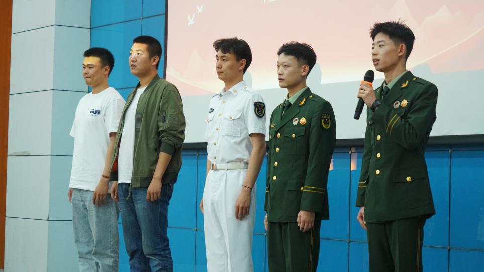 宣讲会上,现役士兵代表梁擎川、傅显诚通过线上音视频的形式向同学们讲述了真实生动的军旅故事,分享自身在军旅生活的体会感悟,鼓励同学们勇于挑战军旅生涯,敢于展现自身能力。退役士兵代表刘永康、候力瑶、钟林岳、王佶、高速、邢於思、刘新宇于线上线下生动讲述了其难忘的军旅生活,分享精彩经历与成长体验,诠释了参军入伍的光荣意义,并号召各位同学积极响应国家号召,将个人理想抱负融入到祖国国防事业当中去。
