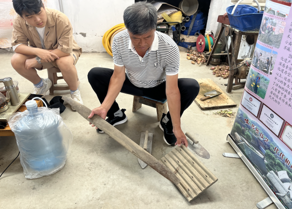 这独特的建筑,要求着十分成熟的苫盖技艺,海草房建筑技艺也被列入省级“非遗”名录之中。1960年出生的刘玉启,是远近闻名的海草房苫匠,是荣成海草房技艺传承人。提到制作工艺,刘师傅拿出苫海草屋顶得工具,向团队介绍道,苫屋顶要苫得极厚,要浑圆、厚实,坡度陡,像我们农村就会看到这个海草房屋顶尖尖的、高高的。团队成员通过对刘玉启采访了解到,当下海草房传播、传承与发展面临着许多问题,像很多非遗传播、传承都在面临的问题一样,海草房建筑技艺也面临缺少年轻血液的问题。“现在的年轻人都到城里打工,很少愿意学盖海草房这手艺的,能够做海草房的工匠越来越少。”刘玉启忧心忡忡地说。