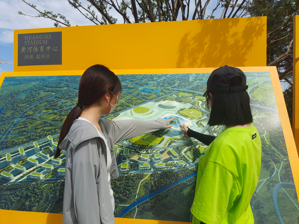 在新旧动能转换起步区,实践团队实地调研了济南黄河体育中心的发展状况。体育中心将“黄河文化”与“体育强国”理念紧密结合,通过参观体育中心建筑景观以及与参观游客的交流,团队成员分析思考黄河体育中心对于推动黄河文化传播与体验的意义,对文化的“创新性转化”与“创造性发展”理念有了深刻体会。