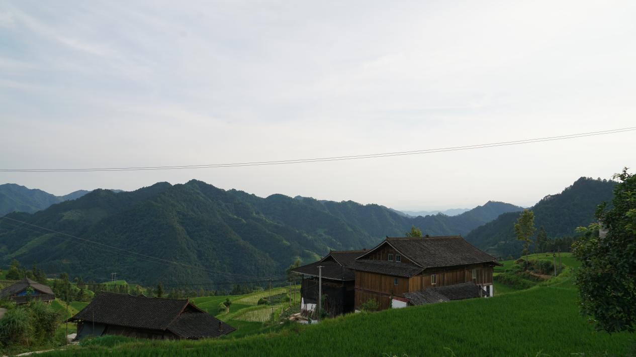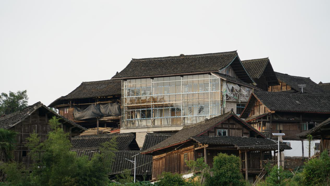 当真正踏入贵州境内,走进大山深处,才亲身体会到了何谓青山远眺,群山环绕之景。在实践团成员到达丹寨之际,就已被自然美景深深震撼。整个小镇依山傍水,没有过多人工建设,将大自然最原始的模样展现给各地游客。且镇上的建筑多为木材所制,样式奇特,多为尖顶,坐落于半山腰之上,仿佛要与山林草木融为一体。在路上闲逛,时不时能看见三两居民围坐聊天,乡音荟萃,或是某只小狗站在屋前守护家院,自然景色杂揉人文风光一切都充满了浓浓的苗疆乡土气息。
