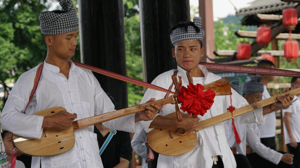 笛声歌舞漫山腰,喜迎新客欢如潮