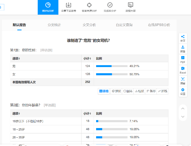 媒介刻板印象调查小组此次的调查问卷主要在山东省潍坊市、临沂市、菏泽市与东营市投放,不限年龄、职业、学历等,使最终呈现的数据更加真实准确、贴近民生。经过多次修改调查问卷之后,团队成员看到了在“危险”的女司机媒介形象形成中,历史因素、社会刻板印象因素与媒介因素在其中发挥的作用不容小觑。