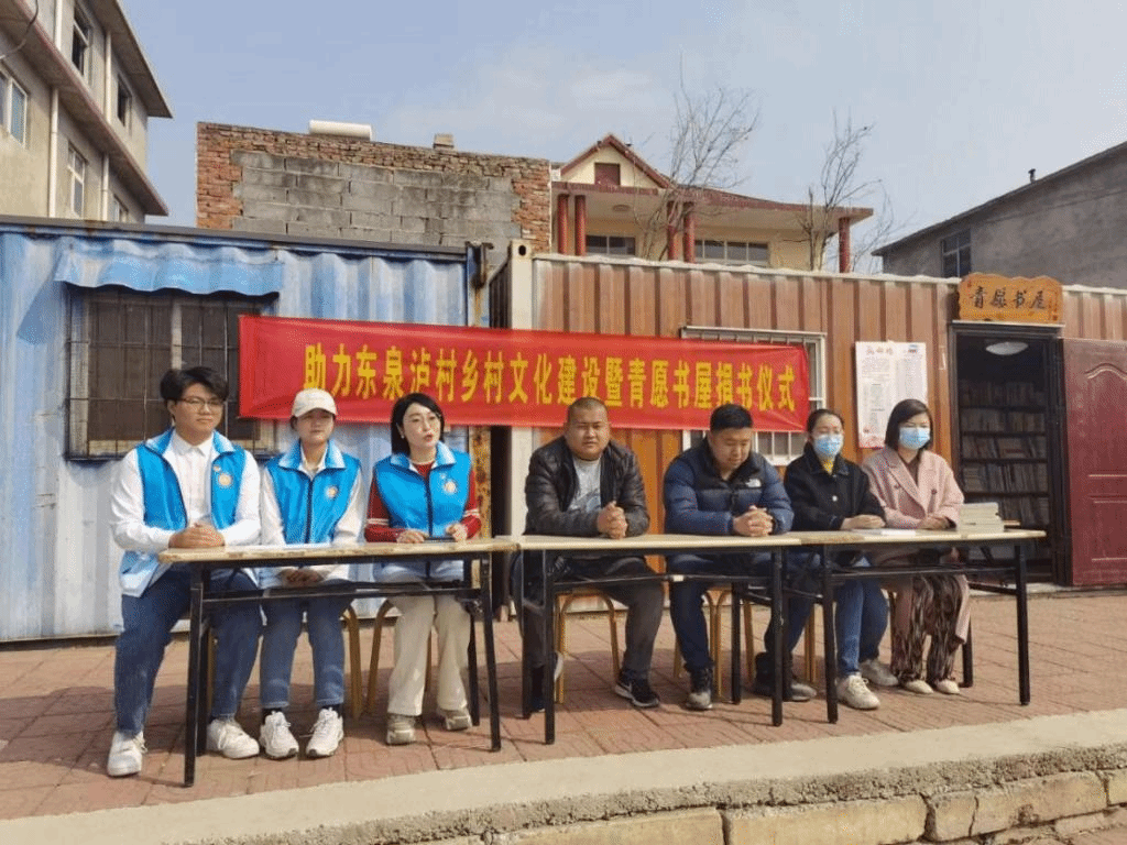 3月18日,助力东泉泸村乡村文化建设暨青愿书屋捐书仪式顺利举行。“青愿书屋”是由济南南部山区仲宫街道办事处东泉泸村利用闲置的办公室改造而成的,由双方共同协商,将爱心书屋命名为“青愿书屋”。播音专业的同学们在书屋内,对周边学生开展了有声语言表达培训,以及读书分享会等活动,渐渐地,青愿书屋成为了许多学生的阅读中心。书屋的设立,使周边的八个村庄的8000多人受益,其中中小学生1000多名,这也是对“文化扶贫,乡村振兴”的最好践行。
