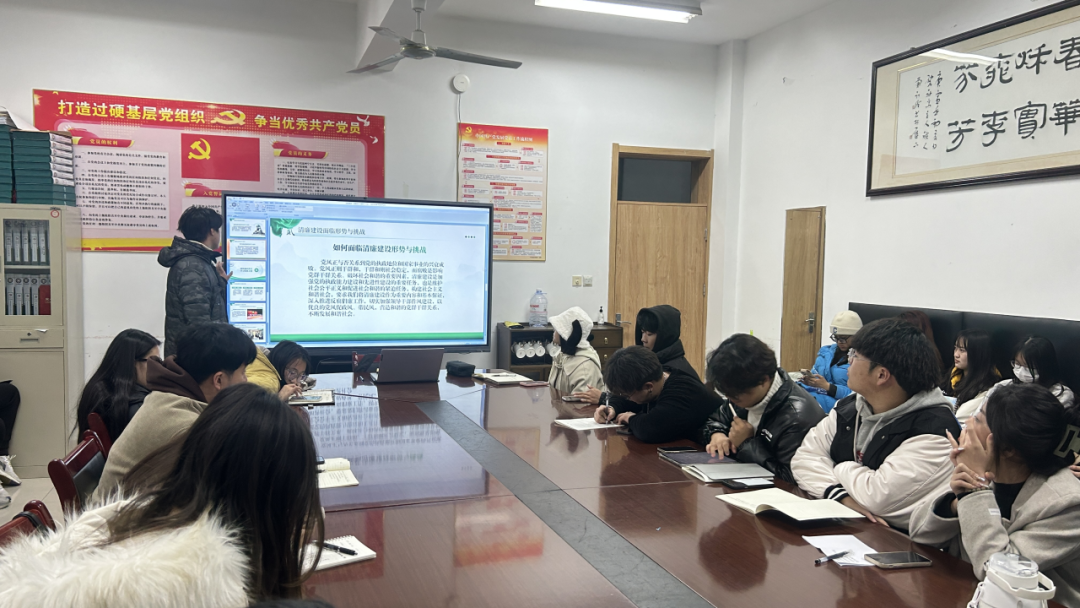 课上,与会学生首先学习了加强廉洁文化建设对广大学生骨干的重要意义。通过廉洁文化建设内涵、清廉建设经验汇报等内容的学习,与会学生深入理解了当前廉政教育的现实意义、党风廉政建设的现实作用和开展廉洁文化建设的重要性,形成诚实守信、正直节俭、崇尚廉洁的意识。会议还达成了学生骨干要树立知敬畏、存戒惧、守底线意识,营造学廉、思廉、崇廉的学生组织风气的共识。