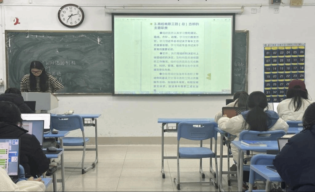 本次培训以《中国共产主义青年团普通高等学校基层组织工作条例(全文)》为学习主体,围绕组织建设、团支部书记工作职责、团员队伍建设、团干部和青年工作骨干队伍建设、领导和保障等章节进行深入解读。会议强调,在团干部和青年工作骨干队伍建设上,要强化政治标准、加强骨干选配、加强教育培训、严格作风建设;各团支部要以《条例》为工作规范,认真履行好基层团组织的责任,不断增强团组织的引领力、组织力,更好地服务学院和学校发展大局;团支部书记要发挥示范引领作用,影响带动广大学生明确学习目的,完成学习任务。