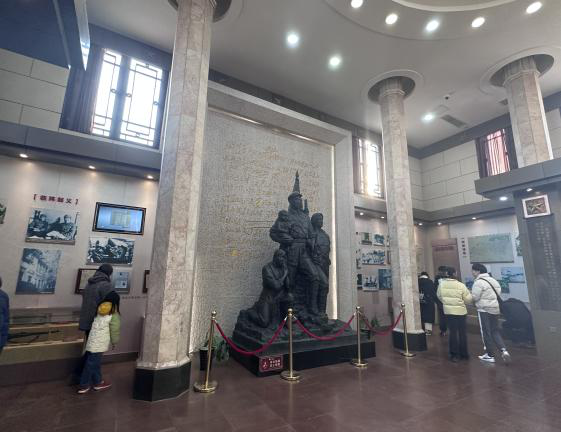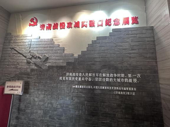 团队成员来到解放阁纪念碑前,面对庄严肃穆的革命烈士纪念碑,向革命烈士们鞠躬致敬,表达对英烈的深切悼念与崇高敬意。进入阁内,大厅中央矗立着一组济南战役英雄群像,四周陈列着济南战役的革命文物。一段段文字,一幅幅照片,让团队成员深入了解了济南解放战争的起源、过程与胜利的意义,认识到了中国革命道路的伟大历程。