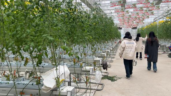 通过亲身采摘草莓与七彩小番茄,成员们深刻体会到了智慧农业在乡村振兴中的优势。同时,在与种植人员的沟通交流中,也详细了解到农产品的种类与生长环境,以及温室大棚技术的普及和应用。在这500亩温室大棚建设的高档果蔬采摘基地中,团队成员感受到了乡村小镇的温度,更体会到了乡村发展的加速度,这也是促进乡村农业发展中浓墨重彩的一笔。