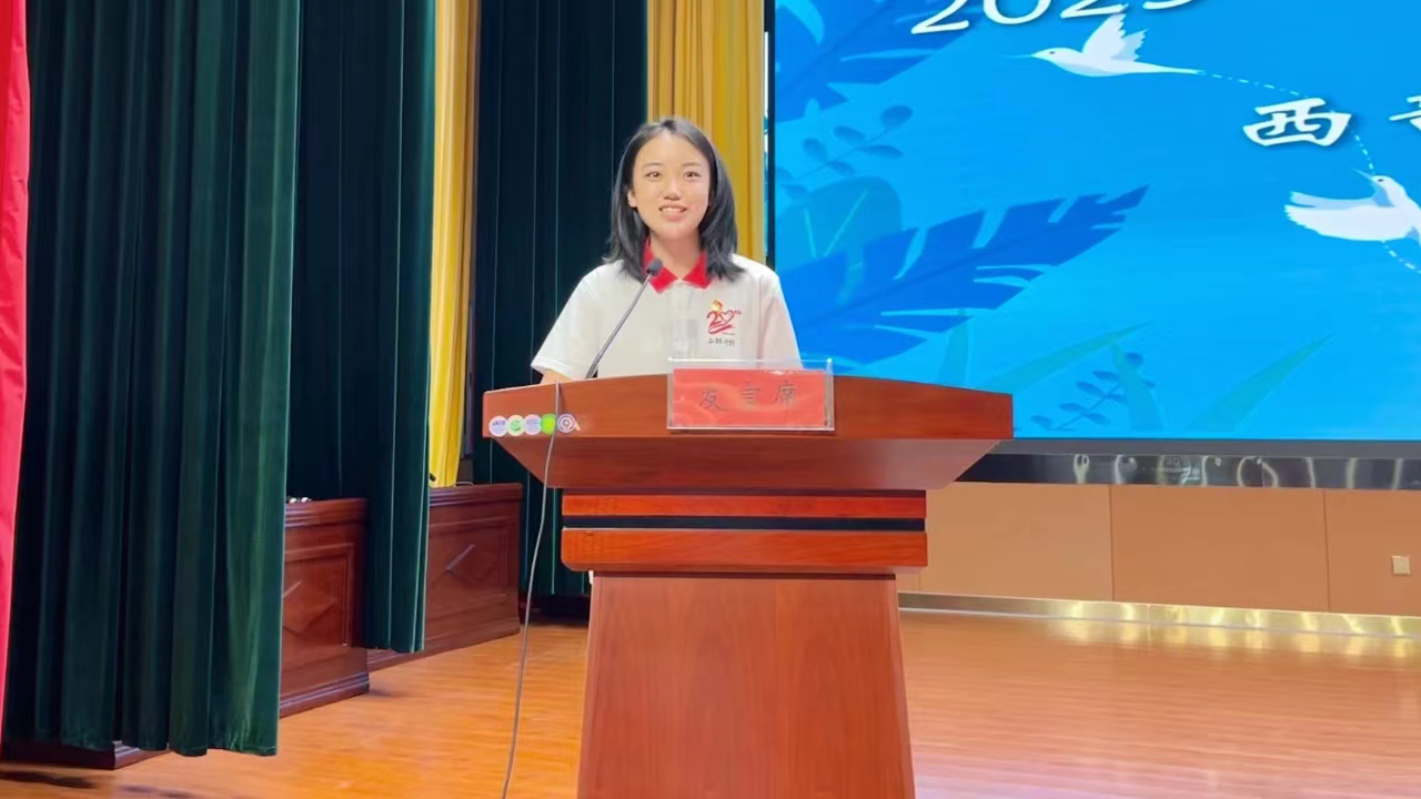 2023年盛夏,2019级播音与主持艺术专业的毕业生陶婧泽,选择穿上红色的志愿者服,踏上去往新疆生产建设兵团第四师可克达拉市的征程,参与西部少先队以及青基会工作。