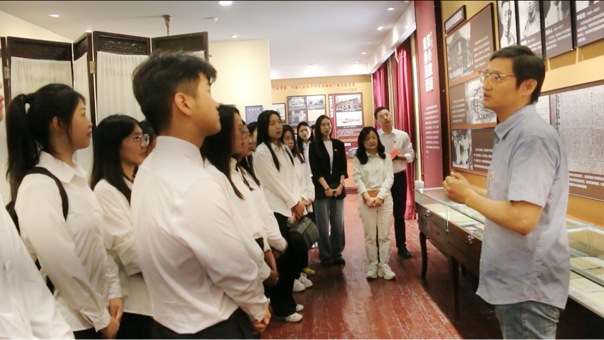 重温红色历程,汲取奋进力量。活动伊始,学院师生参观山东省建团纪念馆,站在革命先辈们的照片前,两代“00后”实现了一场穿越百年的对望,身临其境地感受了百年前的中国青年为革命事业奔走呐喊的慷慨激昂。学生纷纷表示要以先辈为榜样,铭记历史,传承革命先烈的奋斗精神,坚定听党话、跟党走,书写新时代青年的责任担当。
