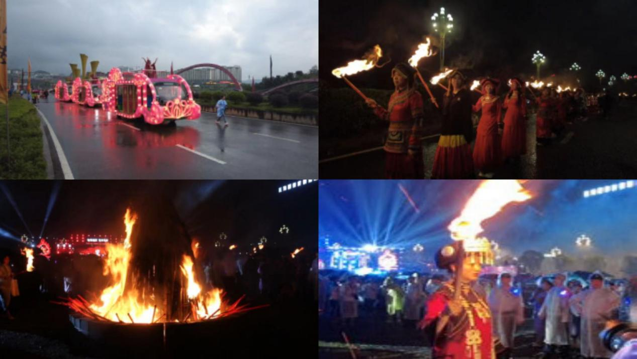 本次篝火晚会共分为六个板块:暖场歌舞、致欢迎辞、祭火大典及非遗展演、跑火龙、篝火狂欢以及烟火秀,无一不体现出民族团结以及民族魅力。活动当天下起小雨,团队成员在确保设备安全的情况下,举起相机,在不同位置抓拍,利用特写捕捉人物表情、动作以及传递的信息,适时采用摇摄、跟拍等手法记录火把的传递以及游客们拉起手来共舞等动态场景,确保素材量充足以及拥有不同角度和景别的视频资料。篝火晚会,不仅是一场聚会,更是一次心灵的诠释,一种对生活的热爱和对美好的追求,团队成员深切感受到独特的民族魅力,带着这份热情和温暖继续前行。