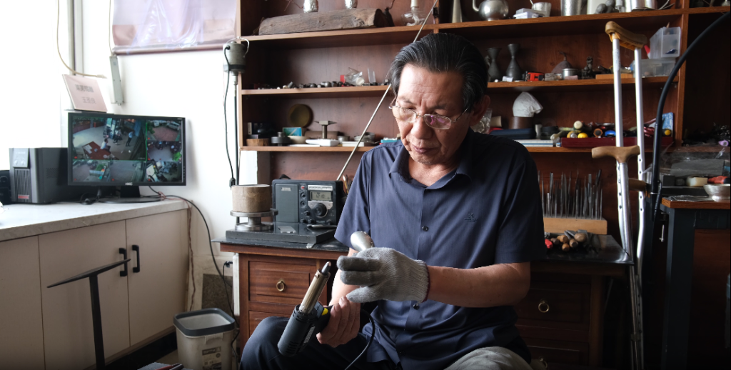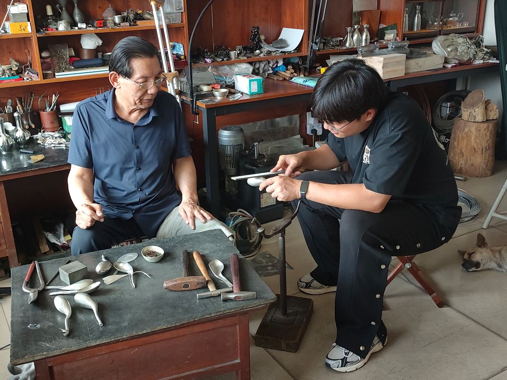 王圣良跟团队成员讲述了莱芜锡雕参与各种非遗活动的经历,展示了部分参与比赛、活动的锡雕艺术成品。当谈到Sora能否为莱芜锡雕带来新的发展可能性时,王绪贤对这一想法表示赞许,并向团队成员表达了他对于Sora的一些设想。对于莱芜锡雕的未来发展,王圣良、王绪贤表示希望更多的年轻人能参与进来,将莱芜锡雕更好地传承下去。