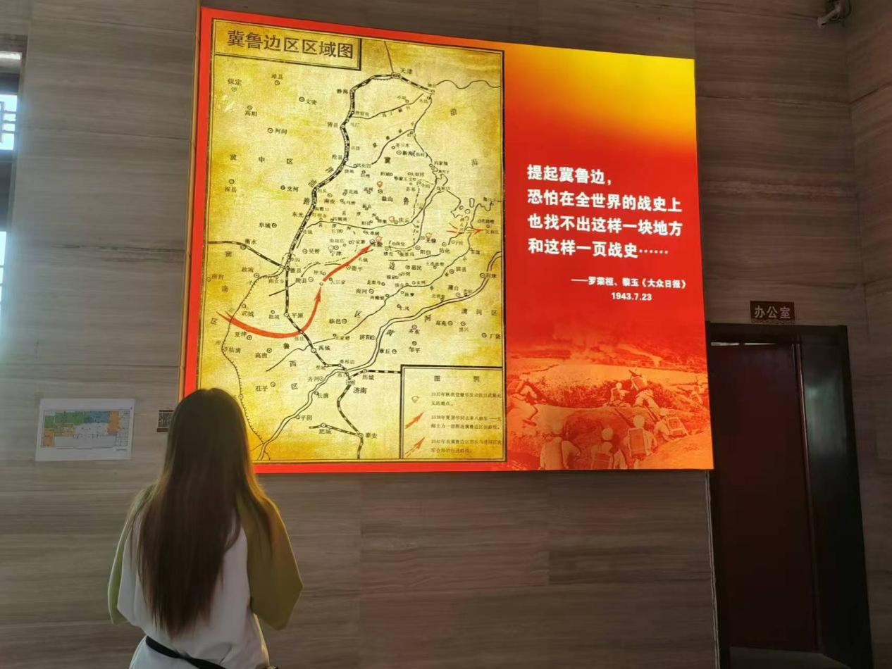 冀鲁边革命区具有重要的历史地位:冀鲁边抗日武装起义,不仅是全国抗战爆发后,中国共产党领导的第一次抗日武装起义,冀鲁边抗日根据地也是山东第一个抗日根据地等等。冀鲁边革命纪念馆保存了大量珍贵的历史资料,将这些宝贵的历史记忆镌刻于此,团队成员们在参观过程中,被一个又一个英雄事迹感动,对抛头颅、洒热血,守护这片土地的烈士们肃然起敬。