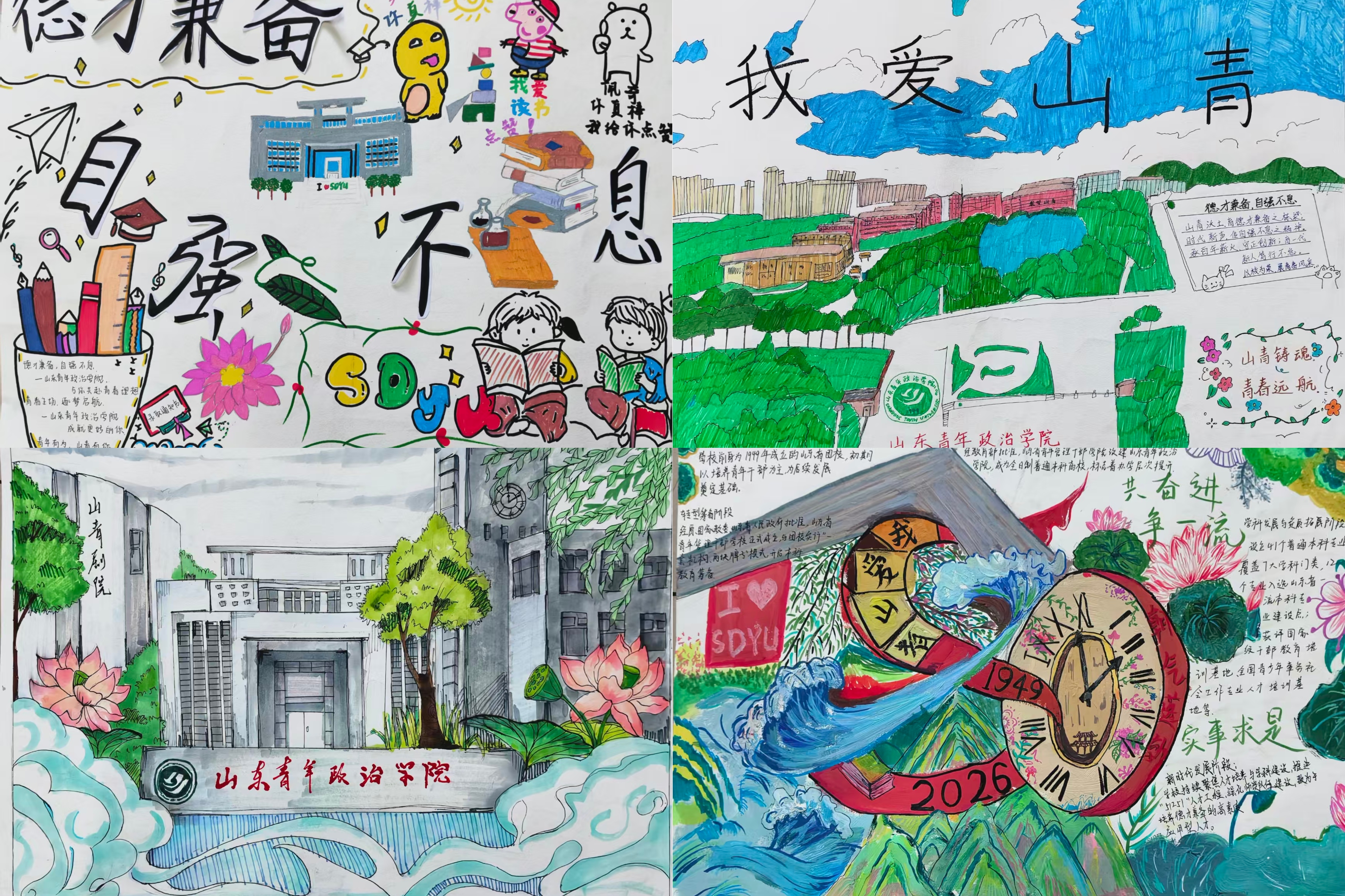 本次大赛以宿舍为参赛单元,各宿舍成员通力配合、齐心协力,用画笔绘初心,以色彩寄深情。大家充分发挥自身想象力与艺术创造力,创作出立意鲜明、感染力十足的优秀手绘作品。作品里,既有对校训“德才兼备,自强不息”校训精神的生动解读,也有对和谐友爱、互助共进寝室生活的鲜活呈现,全方位展现了山青学子朝气蓬勃、向阳奋进的精神面貌。经学院组织评审,具体获奖情况如下: