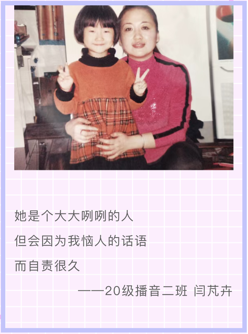 活动过程中,学生们将自己心目中想写给妈妈的祝福以“三行情书”的形式表达出来,并通过学院官方微信平台刊发,取得良好效果。与此同时,同学们还纷纷附上自己与母亲的合照,通过图文并茂的表达,再现一个个美好的“母女故事”。