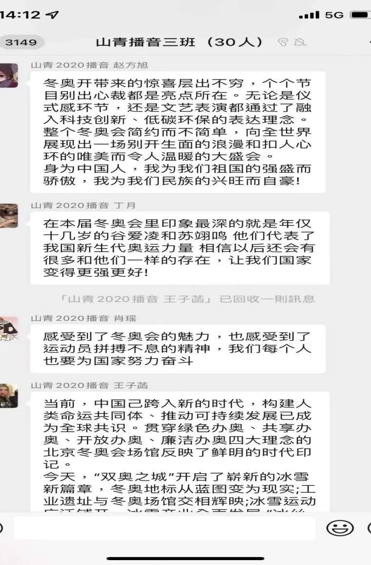 “本届冬奥会的顺利举办,不仅再次彰显了我国的先进、包容和强大,更提振了世界人民团结一致、战胜疫情的信心。作为一名即将走出校园的新时代青年,我定会牢记总书记嘱托,将冬奥精神传递给更多人,并在以后的工作岗位上发光发热,用实际行动践行爱国情报国志,携手奋进,一起向未来!”
