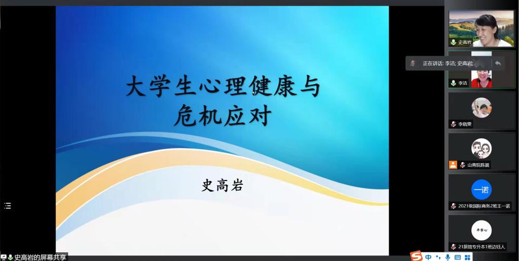 为减缓师生心理压力,学院组织全体专兼职辅导员、班主任、心理委员、宿舍观察员参加学生工作部(处)大学生心理健康教育咨询中心举办的心理健康教育技能提升专题网络培训。本次培训特邀史高岩主任担任本次讲座的主讲人,以“大学生心理健康与危机应对”为主题,分别从心理健康、心理危机、校园心理危机应对三方面进行论述,提出开设校园电话危机热线,建立与学生心理上的接触与沟通,调节学生的情绪与压力。并强调在疫情封校期间要重视学生们的心理健康,提升大学生的心理健康教育,促进学生人格完善。