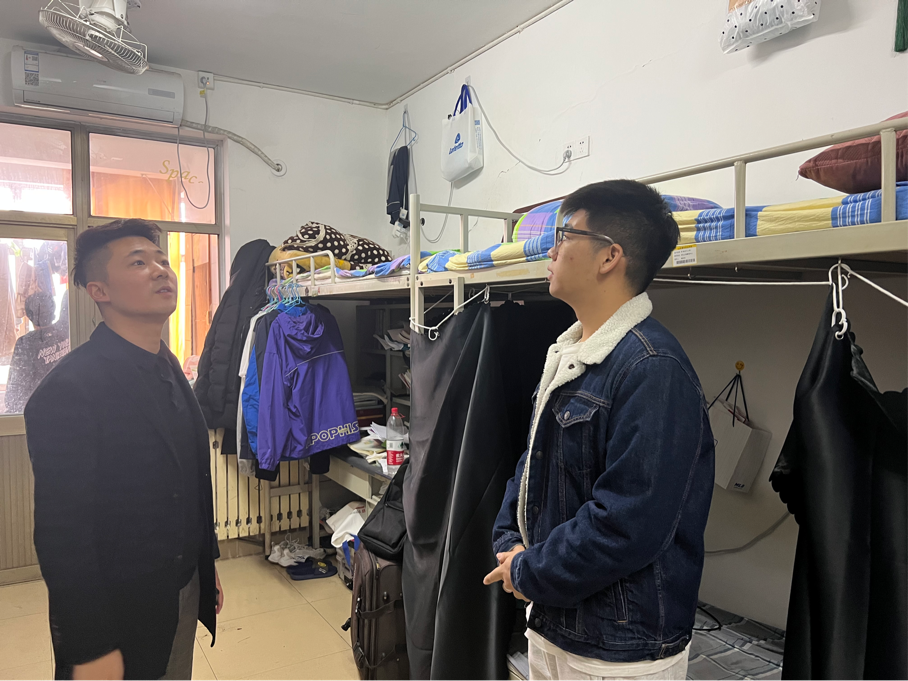 在走访过程中,辅导员们对大家提出的关于学习、生活和校园安全管理等各方面的问题进行记录并一一解答,并对同学们提出期望:希望大家加强自我管理,落实安全用电的相关制度,保持整洁有序的宿舍环境,按时归寝。养成健康文明、积极向上的生活习惯,保持阳光开朗、乐于表达的良好心态。珍惜在校时光,充分利用课余时间开展各种有益身心健康的科研、文体活动,留下丰富、充实、美好的大学时光。