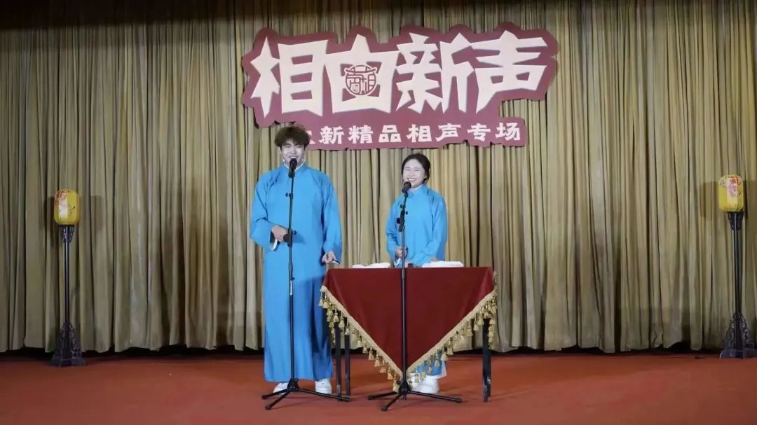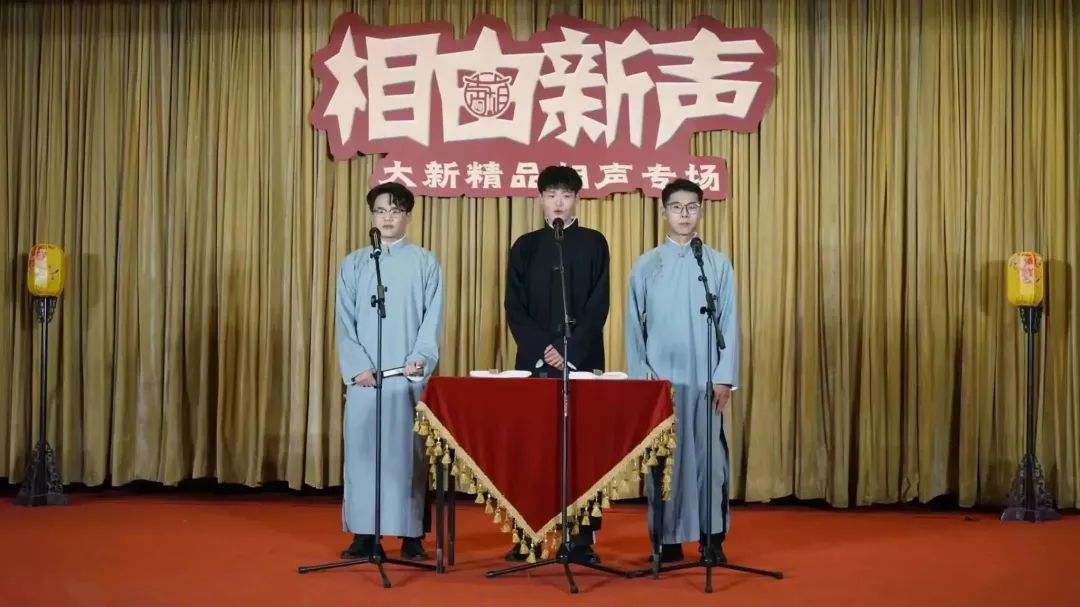 随后,文化传播学院青音社武华健、刘欣带来相声《学富五车》,以青年视角将传统表演与沉浸体验相融合,把曲艺传承与新时代喜好相贯通,展现青年新思想新文化;新一代曲艺小演员郭育玮、王俊熙展示出脍炙人口的传统山东快书《李逵夺鱼》,其节奏轻快,合辙押韵,尽显青年曲艺新一代力量。演出以大新、刘硕的《卖布头》相声作品压轴,作品包袱贴合生活,带领观众在嬉笑中淡然翻页,内容段子契合实际,引领观众在畅快中看向前方,同时以其游刃有余,从容自信的表演,充分展现中华曲艺的底蕴深层,活动以大新、赵改运合作带来的新编历史剧《大唐贵妃》选段《梨花颂》唱曲圆满落幕,现场掌声迭起,活动气氛热情高涨。