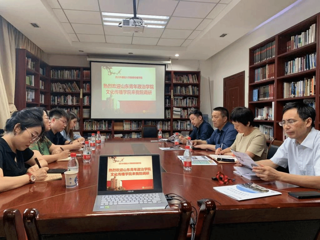 在同四川外国语大学新闻传播学院交流学习的座谈会上,新闻传播学院院长、党总支副书记刘国强首先针对新闻传播学院的办学优势和全媒体人才的培养目标进行介绍,并分享了培养方案设计调整的相关经验。刘绍芹院长介绍了文化传播学院在校地合作、地域文化传播上的相关实践,并表示川外新闻传播学院“读书会”等师生合作项目在学生能力培养当中极具前瞻性,为培养学生良好的学术习惯奠定了基础,值得我们在人才培养过程中进行借鉴。四川外国语大学新闻传播学院党总支书记郭健、副院长郭赫男、丁钟参加会议。