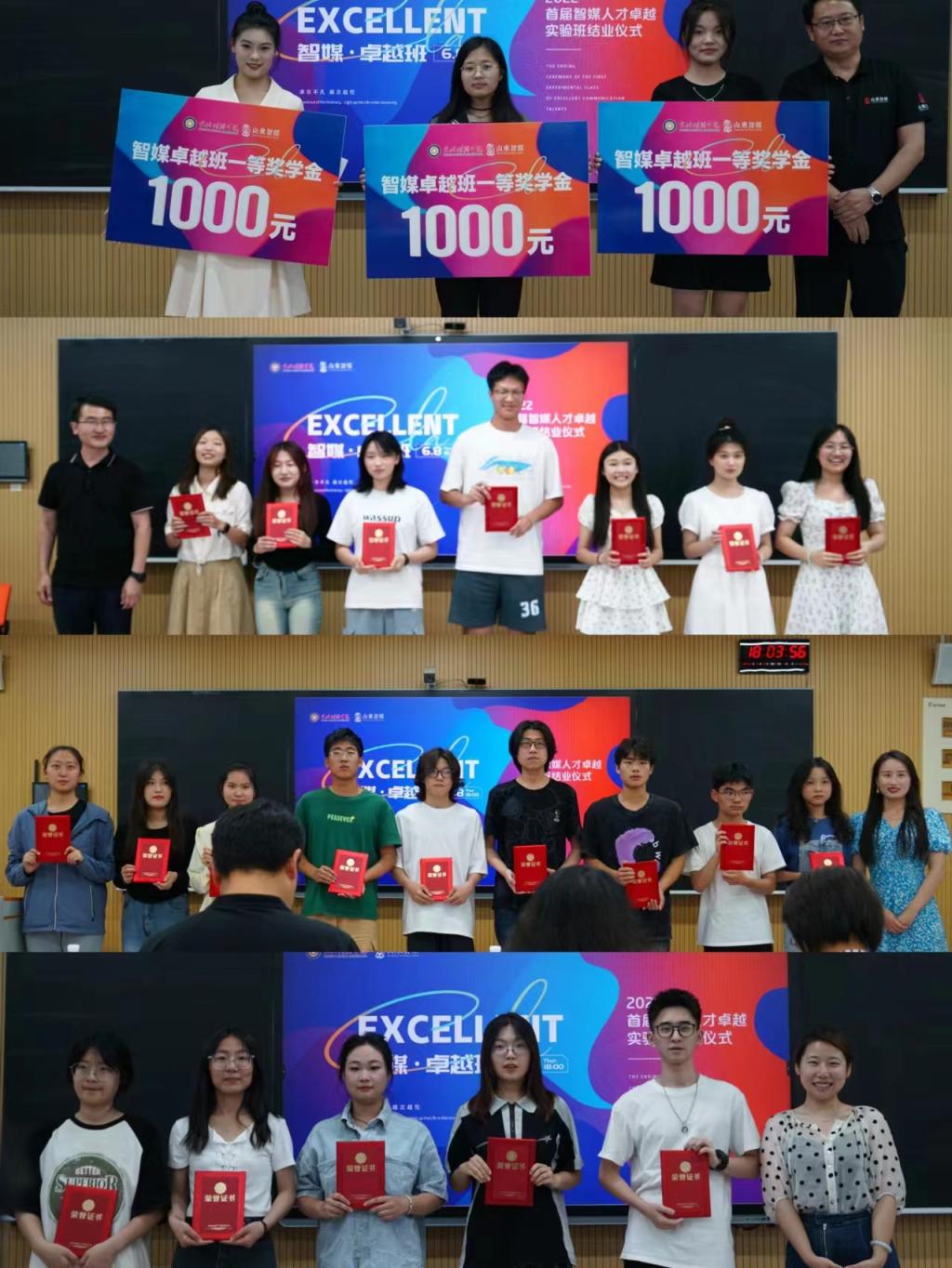 优秀学生代表刘璇、李浩越与王雅楠分别结合自身在卓越实验班的学习经历进行了回顾总结。她们分别从制片和策划、实践学习、文本设计与创作分享了心得体会。杨传忠呼吁大家争做实干型、应用型、高水平新媒体人才。