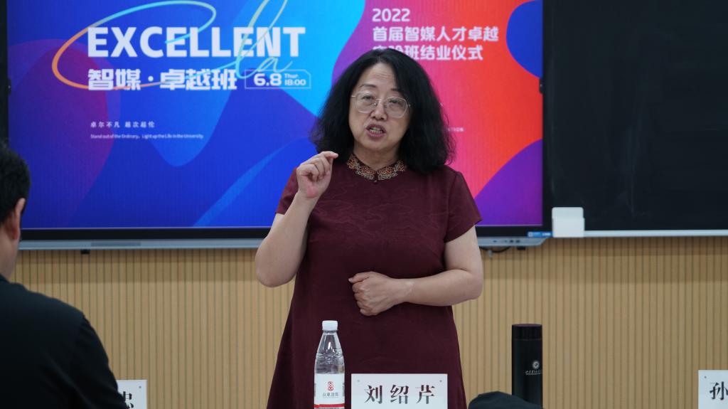 最后,刘绍芹作总结讲话。她祝贺首届智媒人才卓越实验班顺利结业,对同学们取得的优异成绩给予肯定,并对全体为卓越实验班辛苦付出的各位老师表达了感谢。刘绍芹强调,这次活动起到了引导学生培育实践实训能力、创新学习方法、深化校企合作的良好成效,迈出了产学研一体的精彩步伐,她鼓励大家多进行实践锻炼,提升个人能力,实现自我的多元发展。