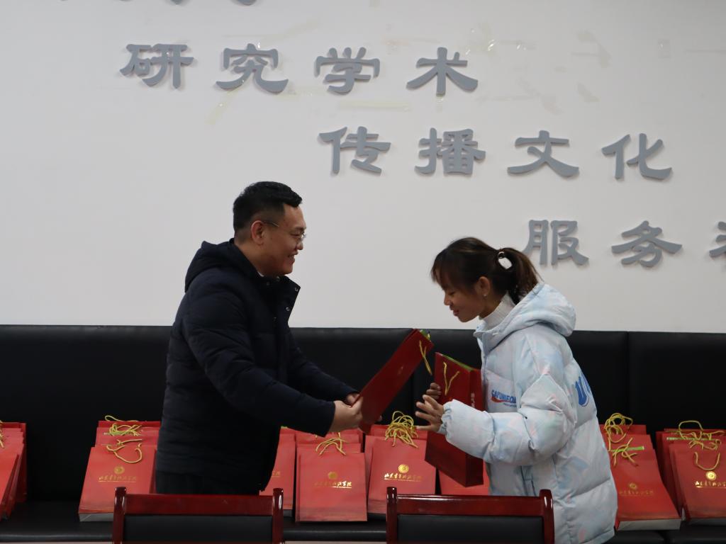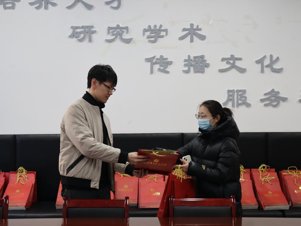 2024年全国硕士研究生招生考试前夕,为缓解考研学生考前压力,增强迎考信心,12月21日,文化传播学院积极做好考研学子的考前保障工作,党委书记杜兴东,副院长孙晓彦、张振及部分辅导员,为考研学生送上“考研加油礼包”,预祝考研学生“金榜题名”。